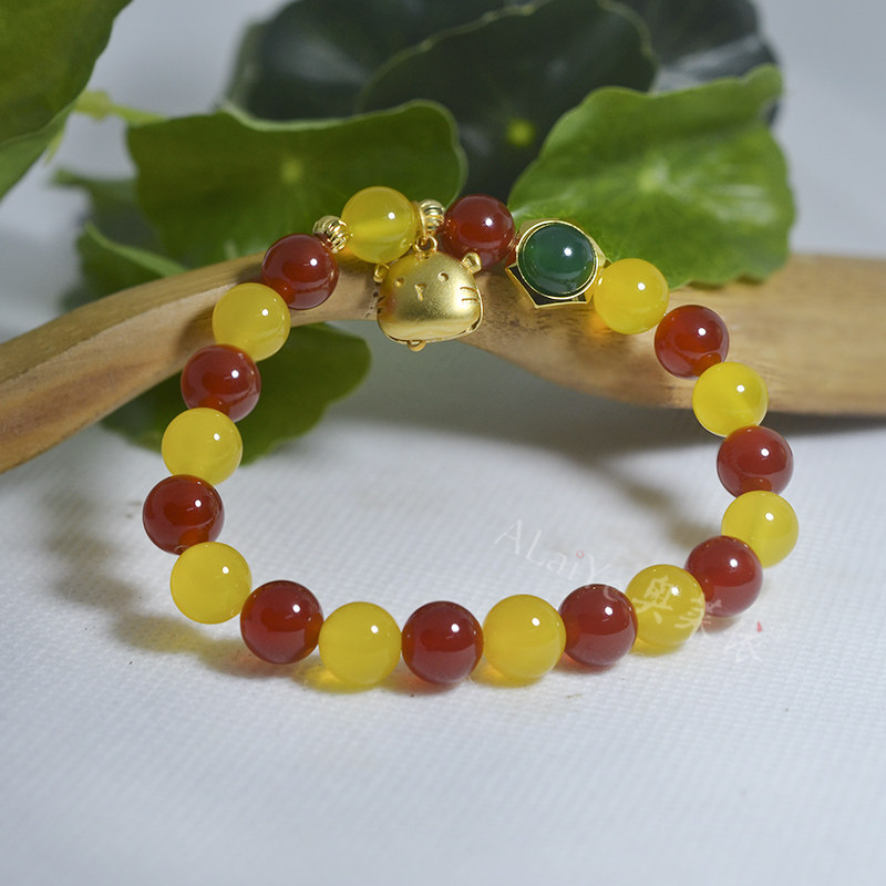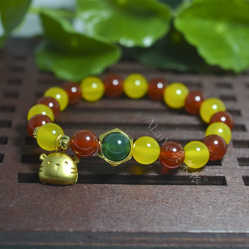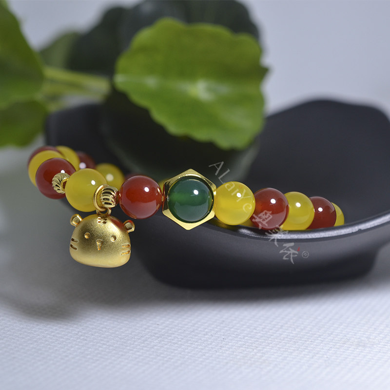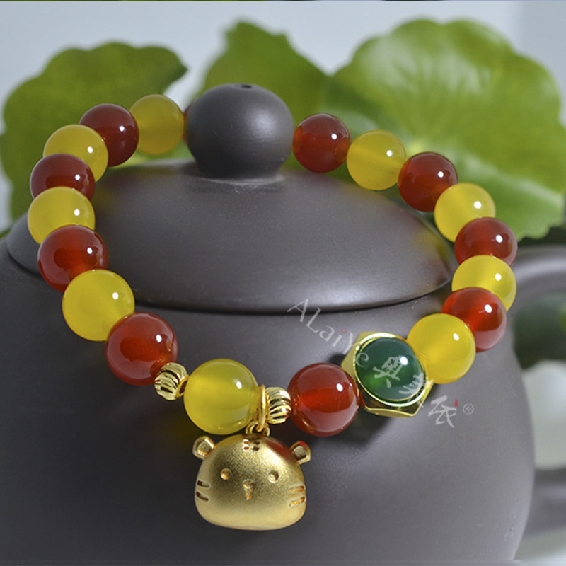 红黄绿色天然玛瑙玉髓虎头手链女生情侣闺蜜串本命马年珠宝首饰品