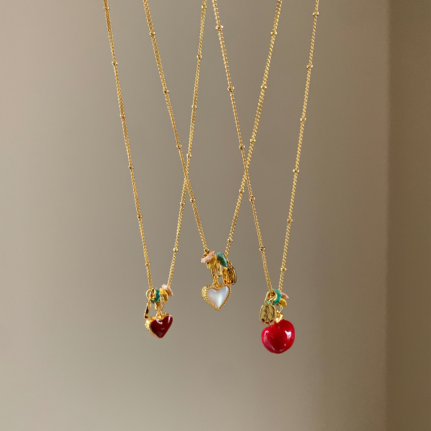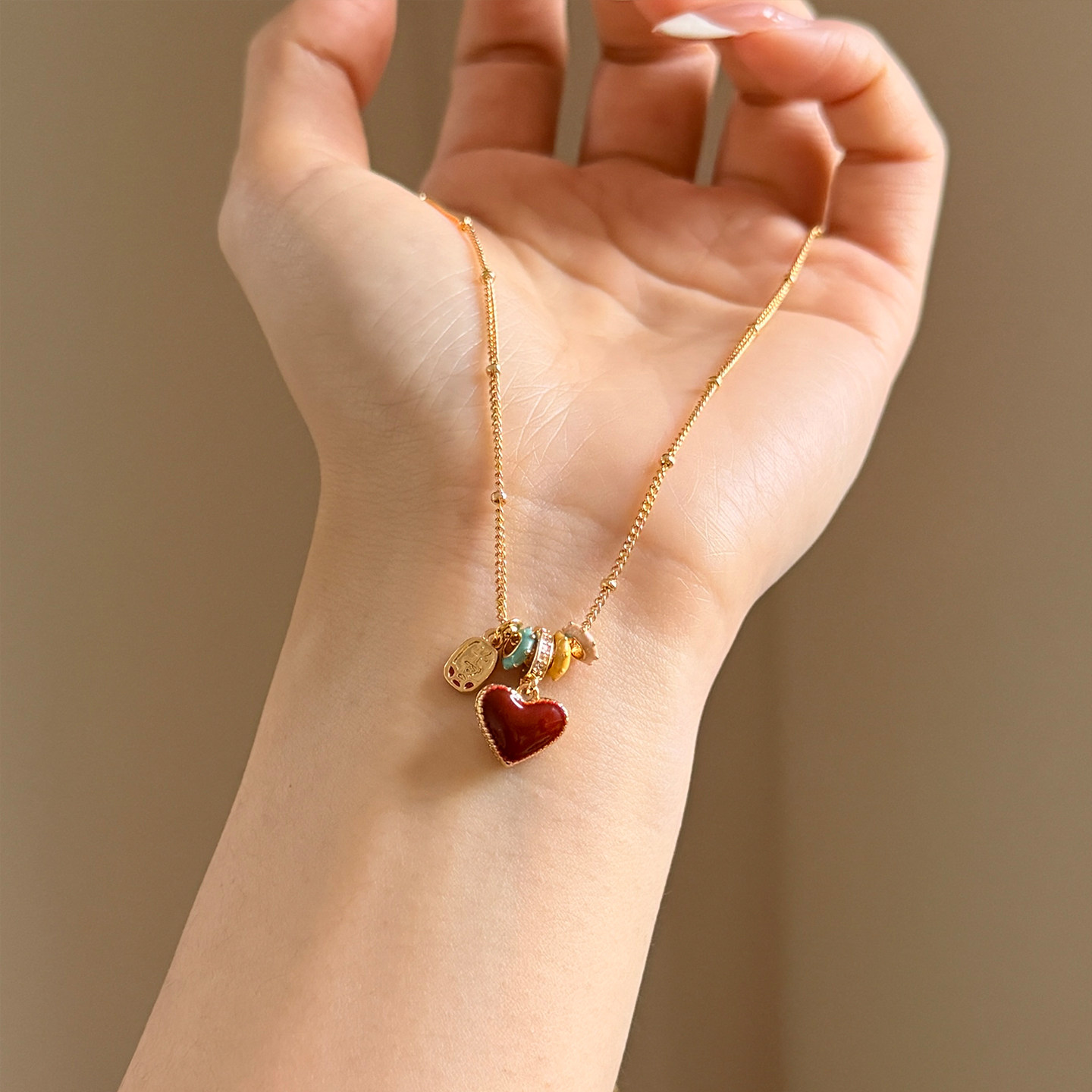 滴釉红色双面爱心项链女2026新款高级感轻奢小众锁骨链颈链配饰品