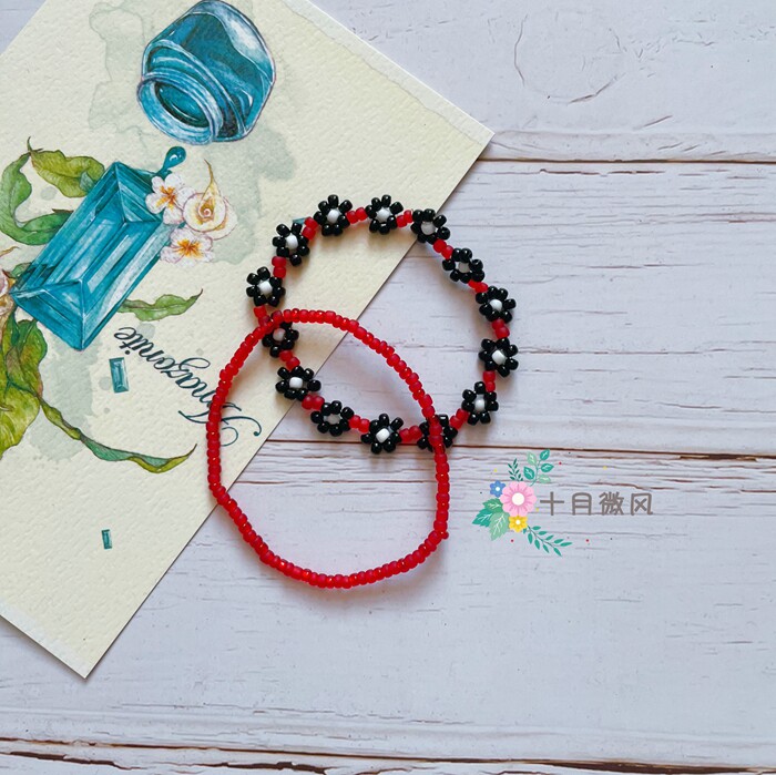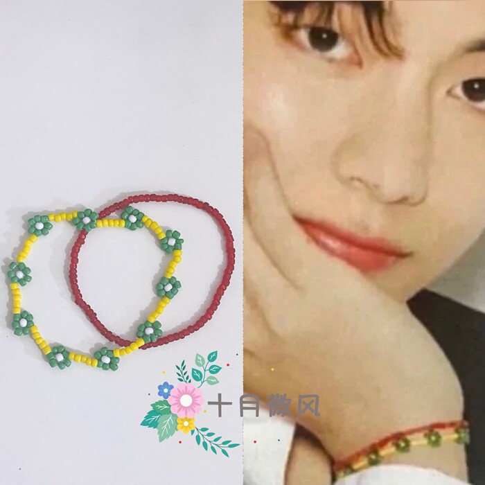 BTS防弹少年团金泰亨同款小花红色手链黑色雏菊黄色绿花diy串珠