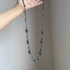 新中式国风蓝色陶瓷串珠项链女民族风编织吊坠长款毛衣链高级颈链