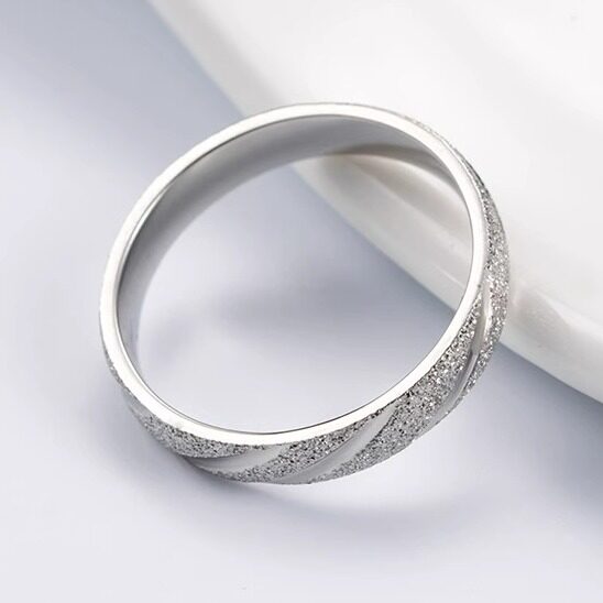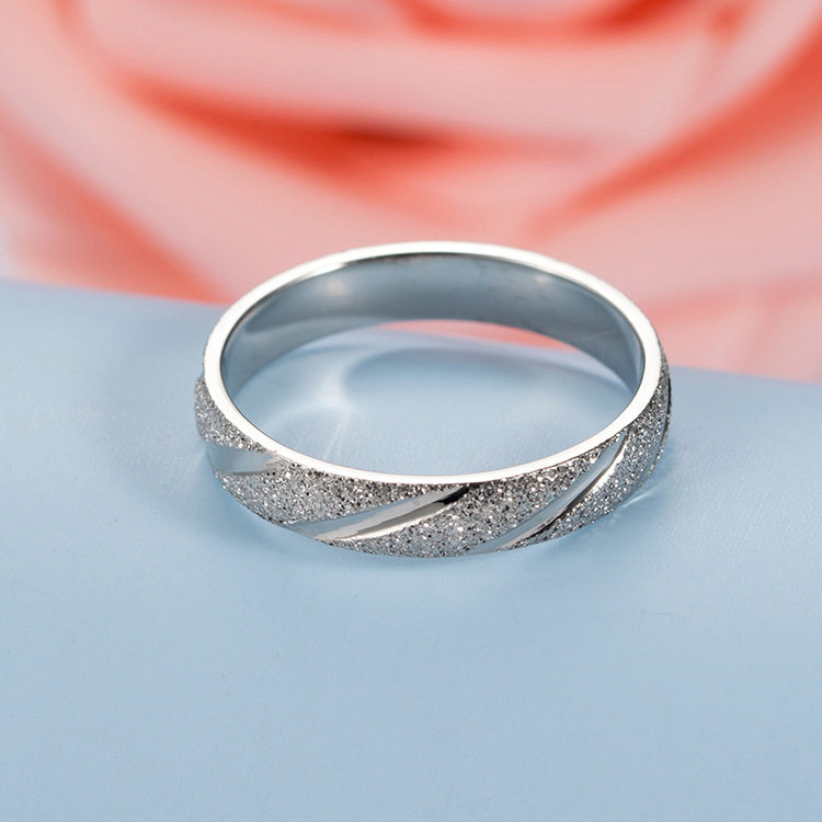 时尚钛钢戒指 简约时尚斜面珍珠砂戒指 几何斜纹情侣钛钢戒指指环