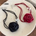 芭蕾风红黑色x山茶玫瑰项圈项链缎带颈饰绑带法式甜美choker性感