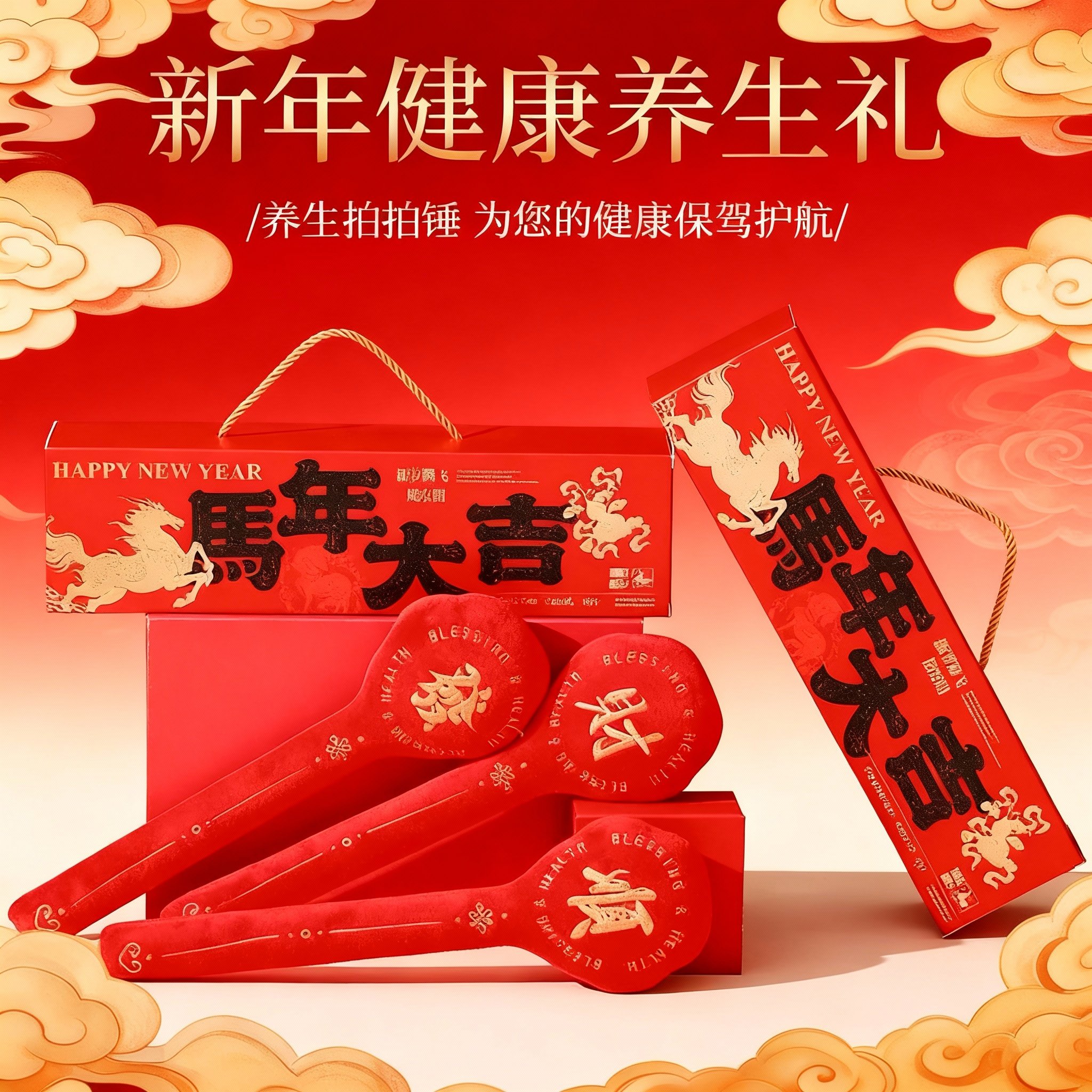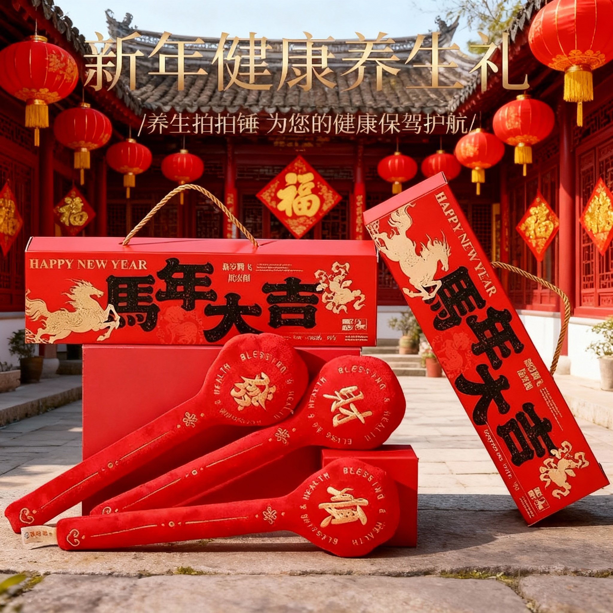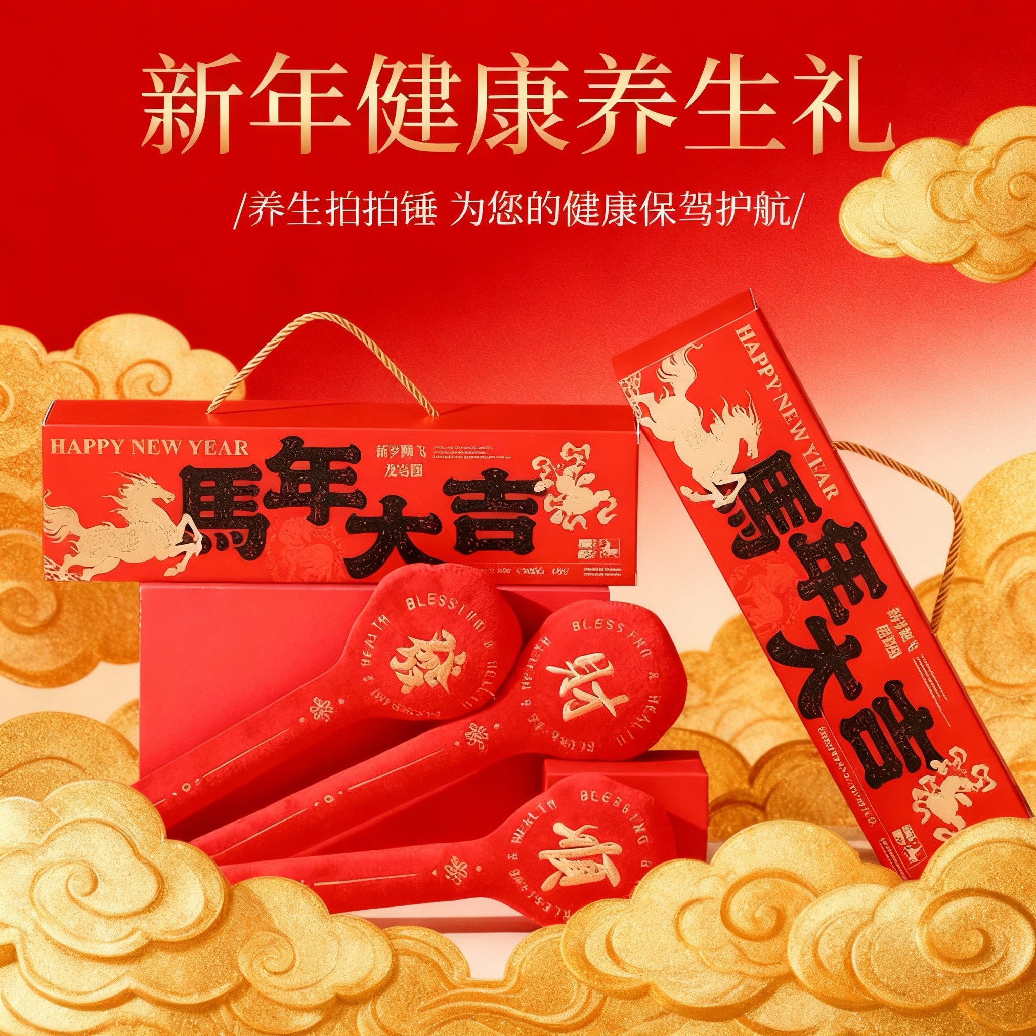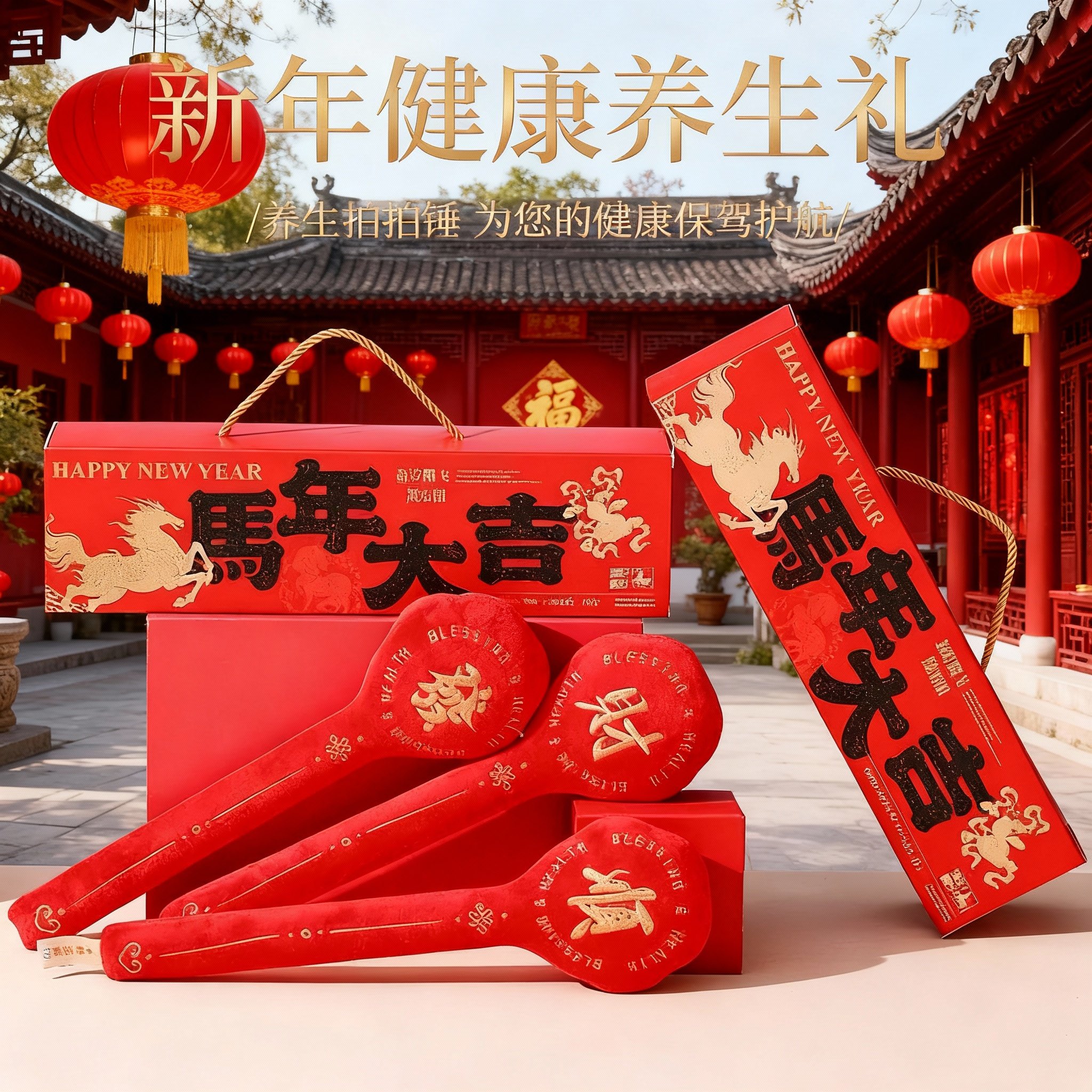 新年本命年红色毛绒动物摆件刺绣祝福国风礼盒装节日礼品