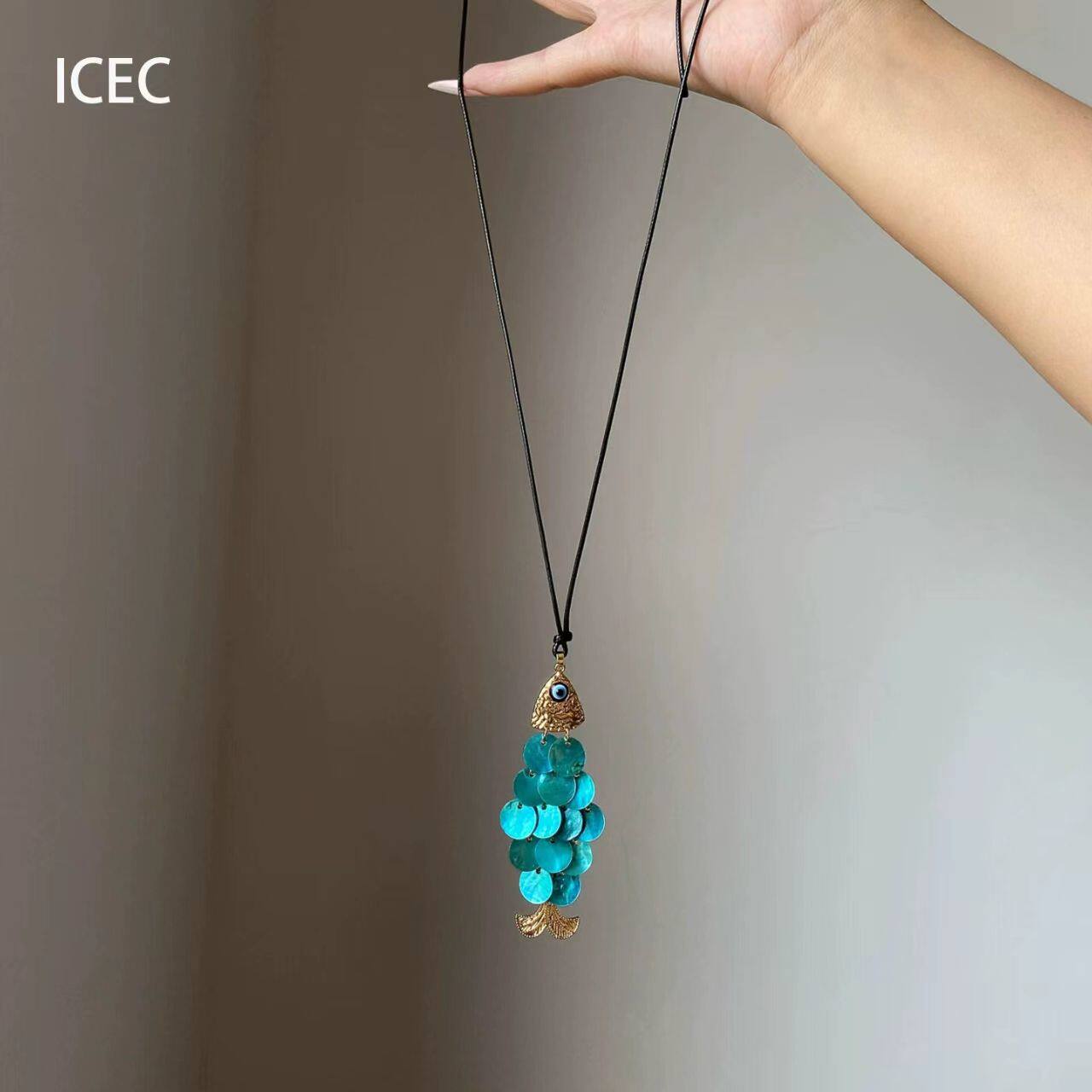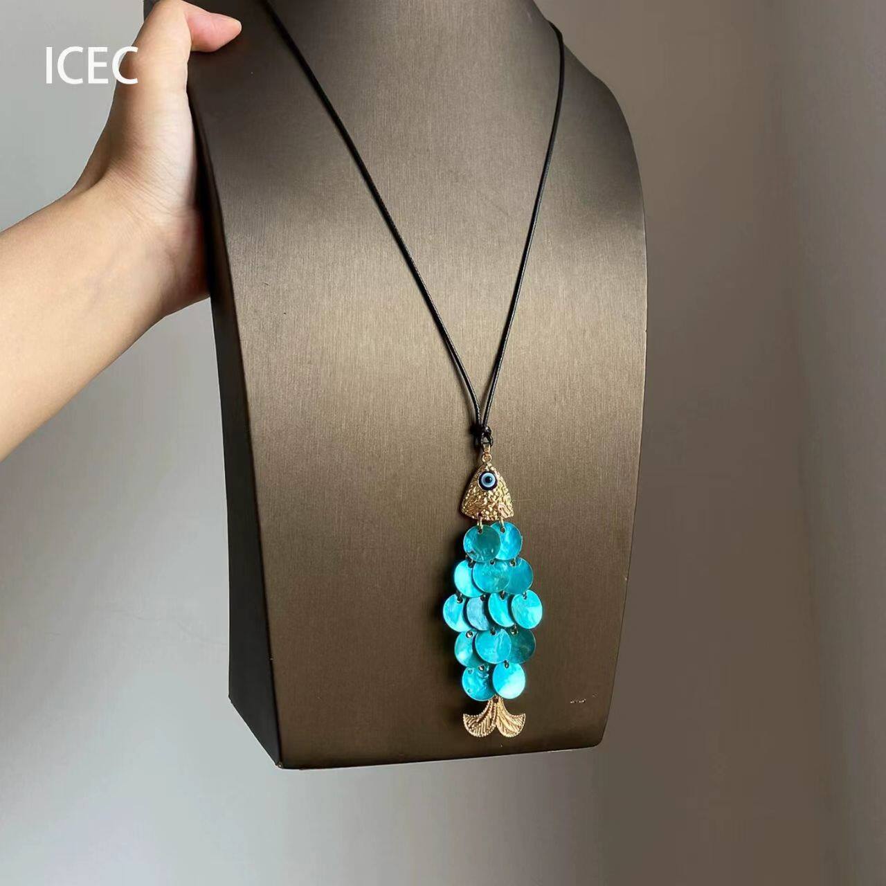 波西米亚蓝色贝壳小鱼项链女2026新爆款复古海边度假风长款锁骨链