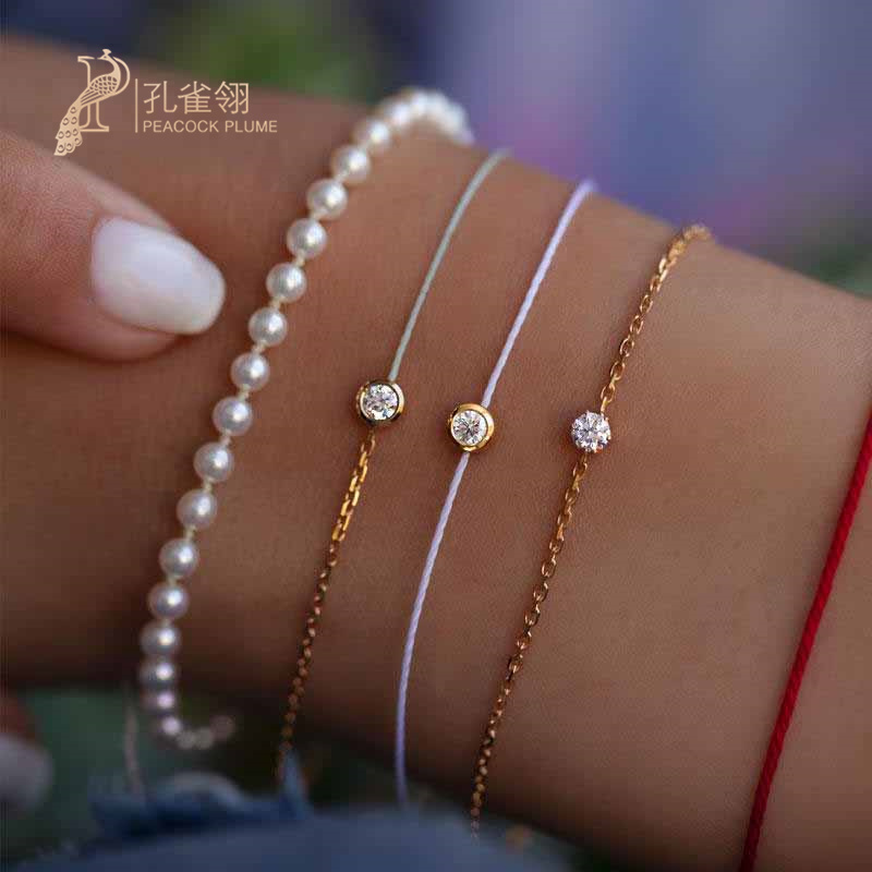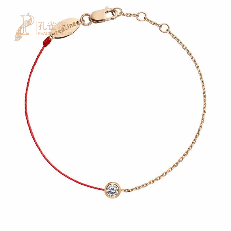 redline红绳女士Pure 0.10克拉圆形钻石半绳半链优雅时尚手链