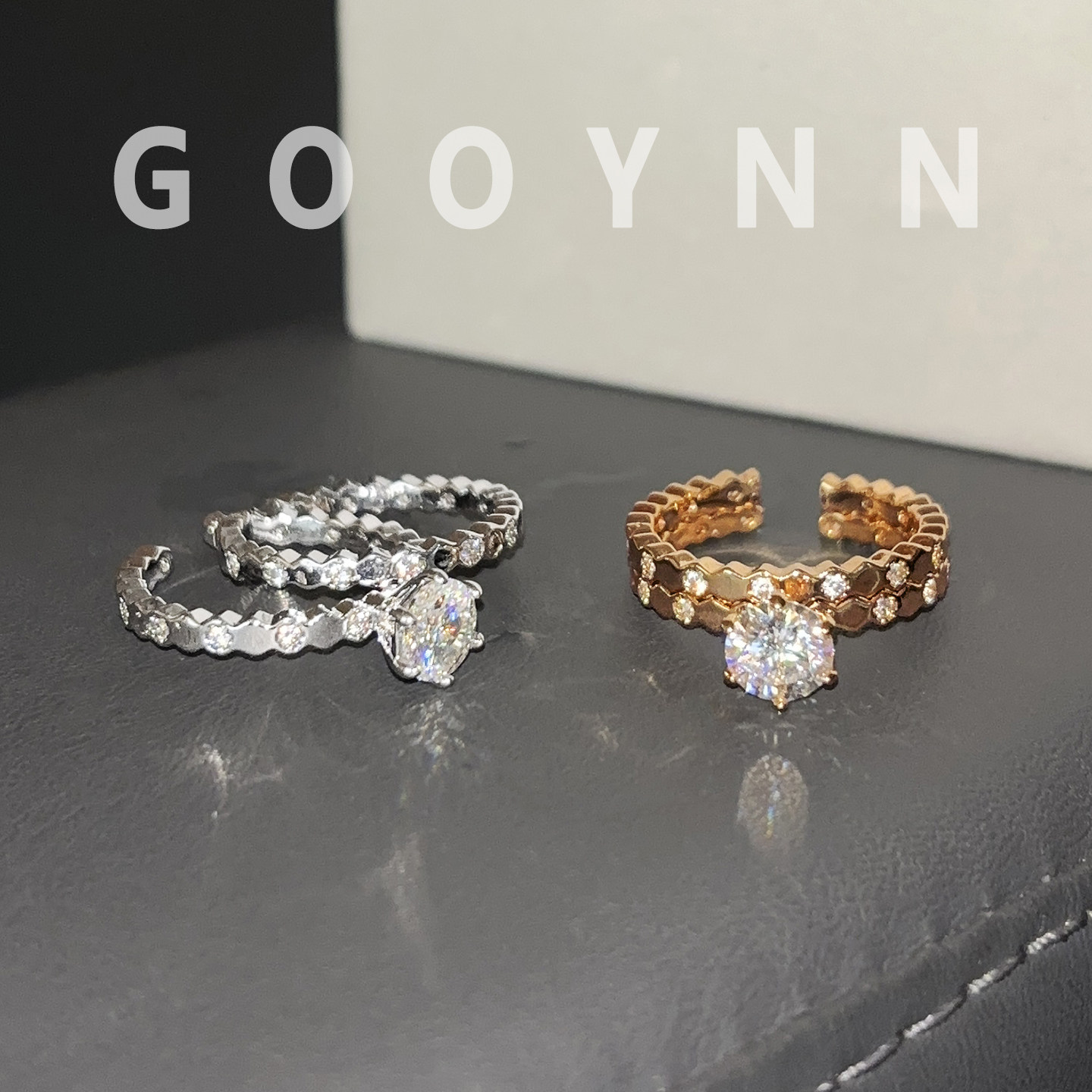 蜂巢不掉色爆闪排钻戒指女小众高级感开口食指戒素圈锆石叠戴指环