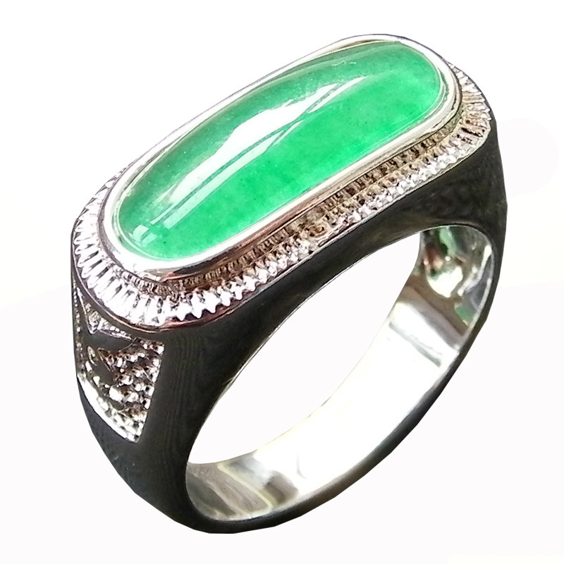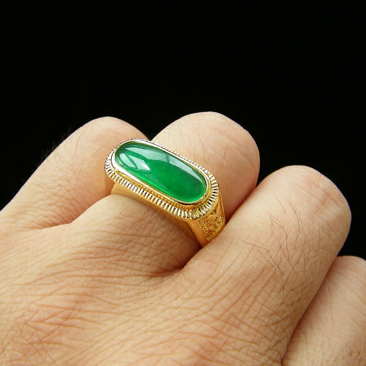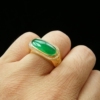 翠绿色阳绿潮男士扳马鞍指戒指镀金镶嵌祖母绿玉石戒面金镶玉戒子