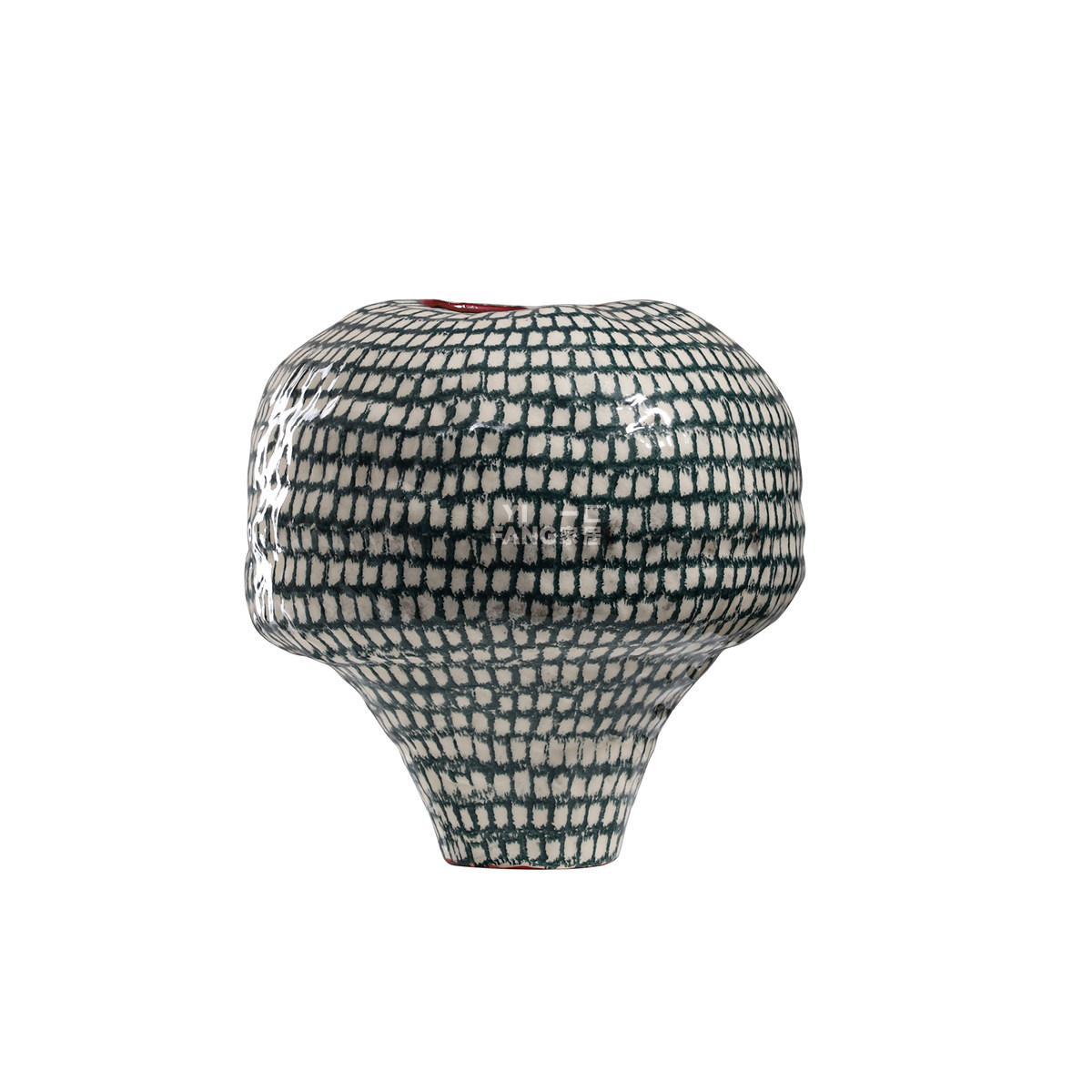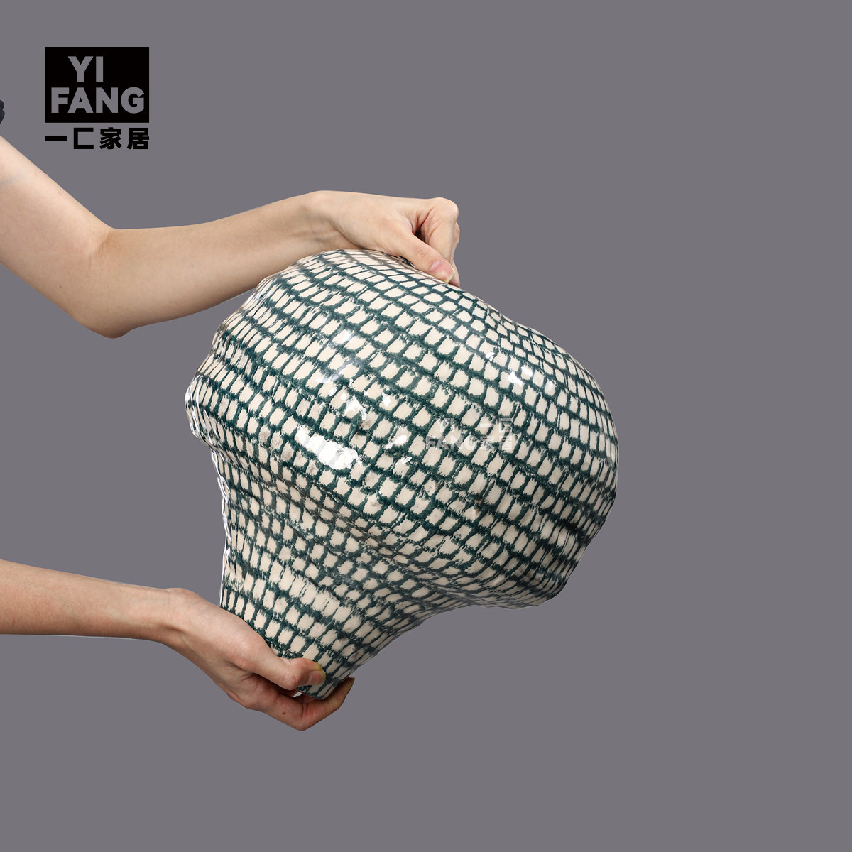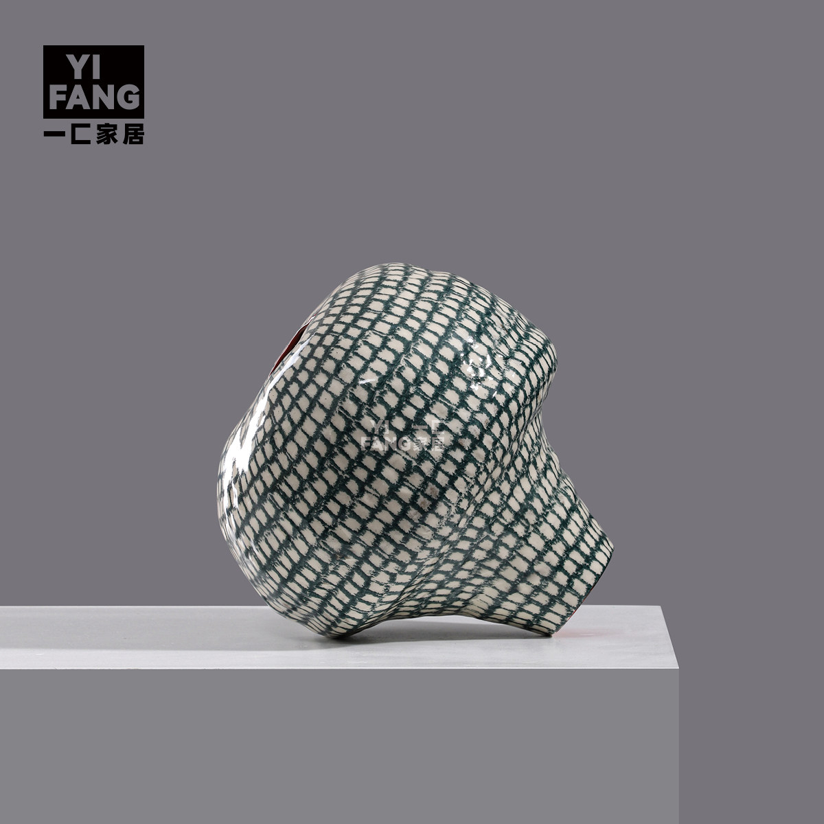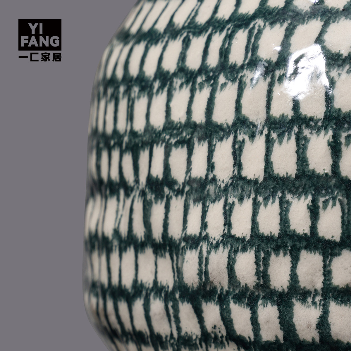 大丹 正品 新中式绿色格纹大丹原创艺术花器 酒店茶室装饰摆件