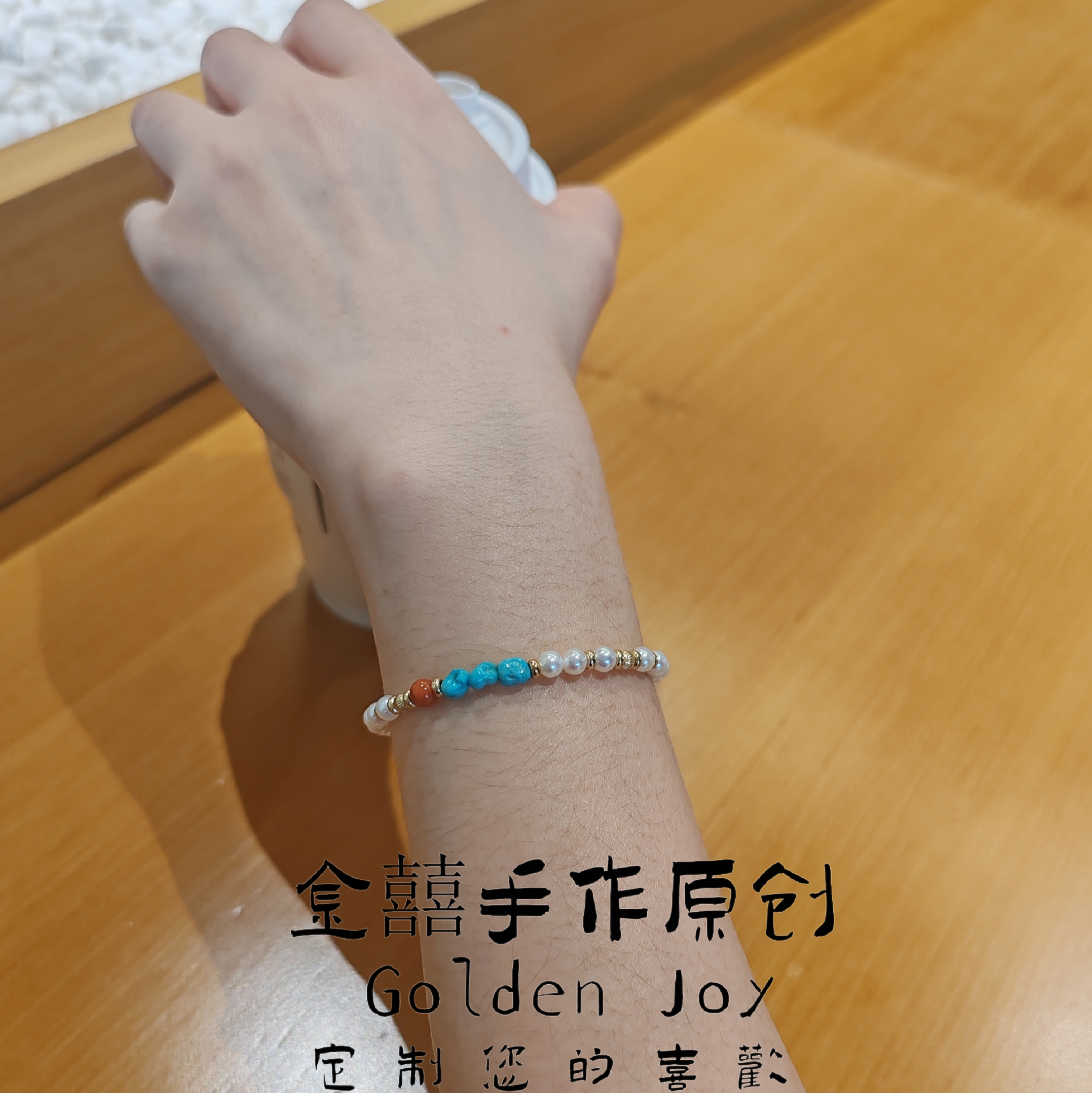 天然美松淡水无暇珍珠南红美国14k包金配件小众不褪色高级感手串