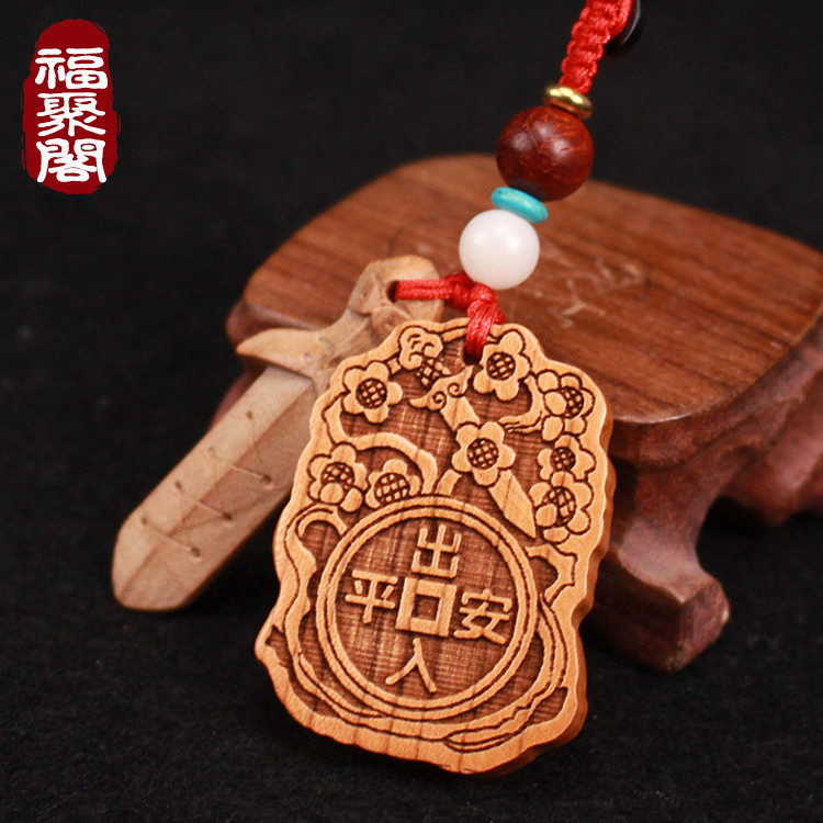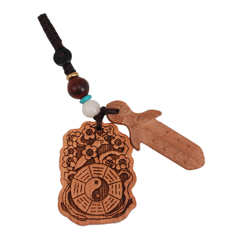 桃木剑斩钥匙扣七星卧室挂件床头烂桃花小八卦镜斩断吊坠随身饰品