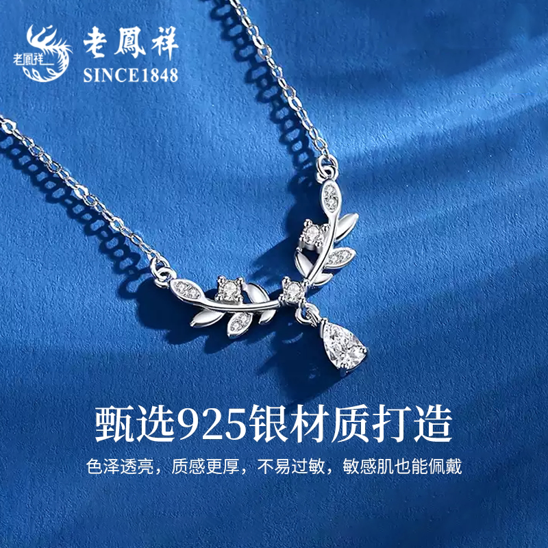 老凤祥月桂女神纯银项链女款2026新款s925锁骨链生日礼物送女朋友