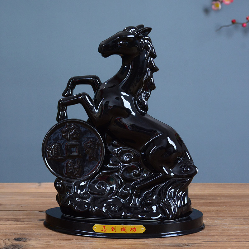 陶瓷龙摆件黑色十二生肖龙风水摆件瓷招财镇宅工艺品乔迁开业礼品
