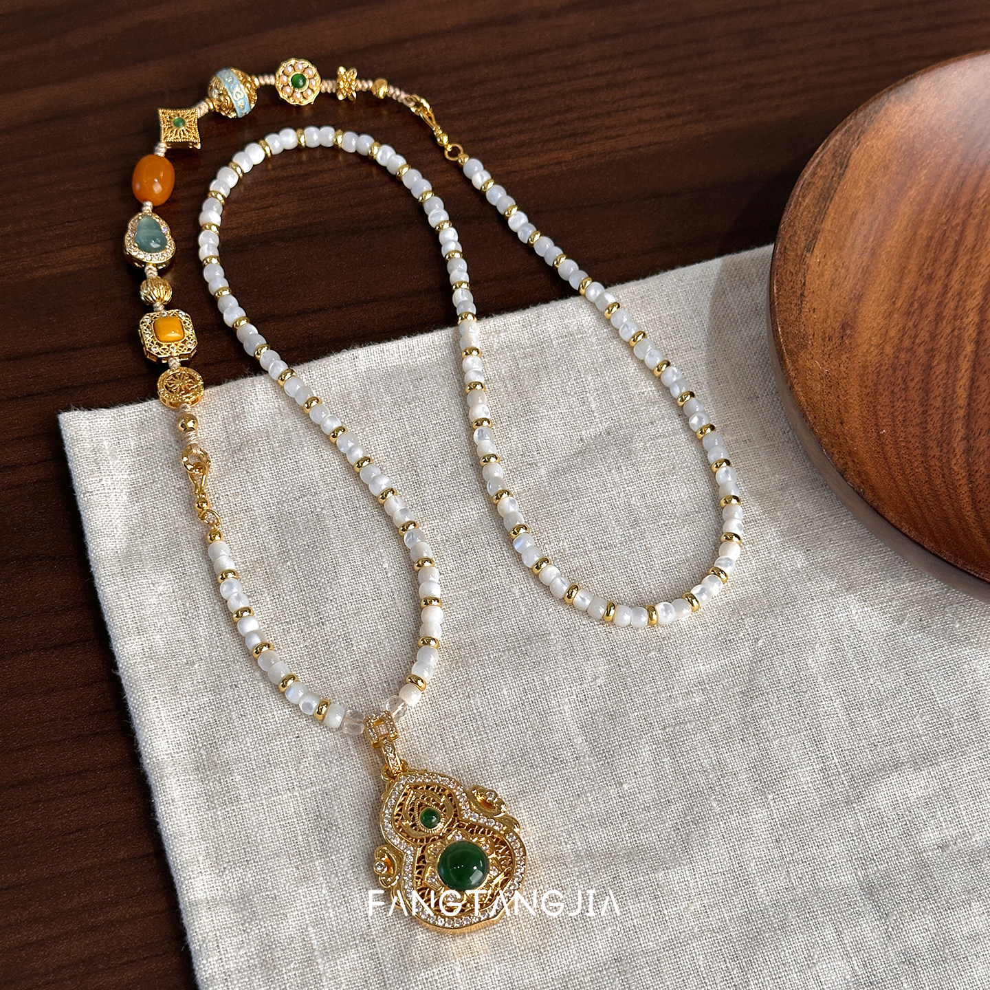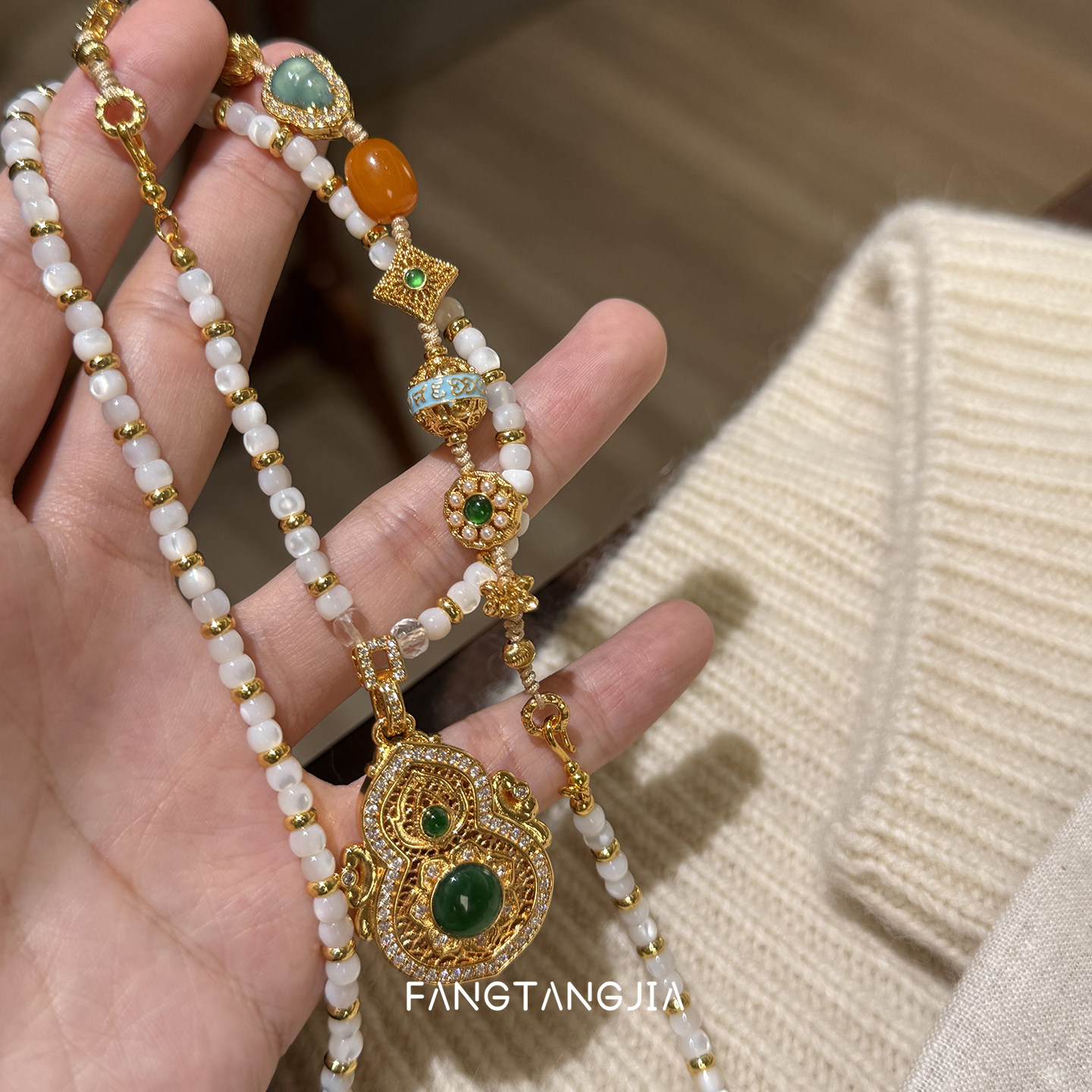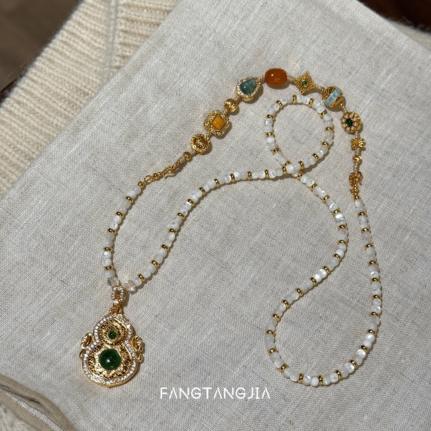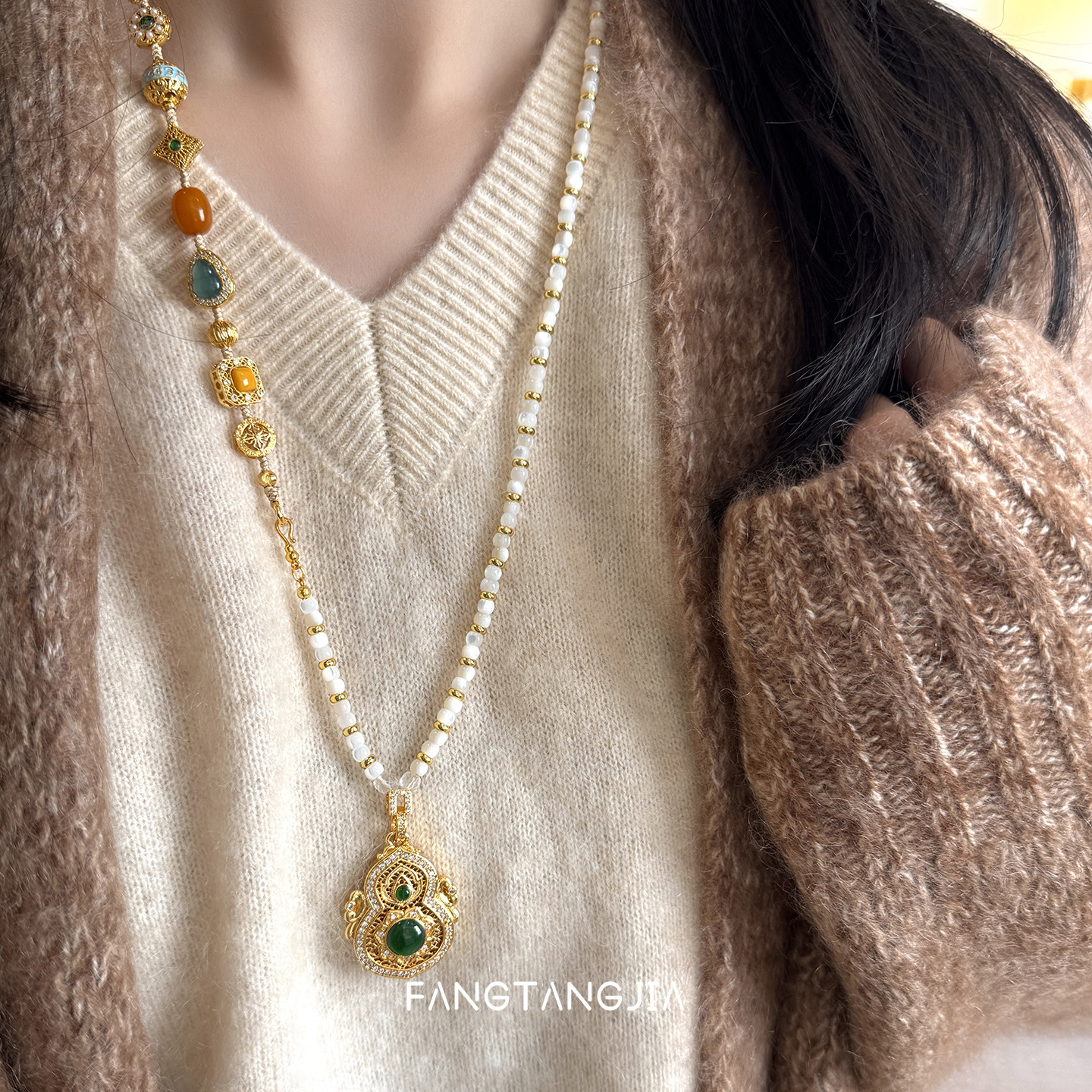 方糖家 原创多宝翡翠蜜蜡新中式葫芦长项链2025新款轻奢毛衣链女