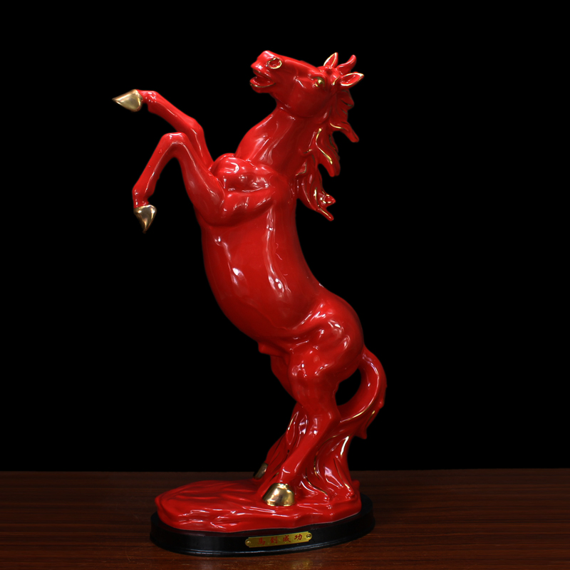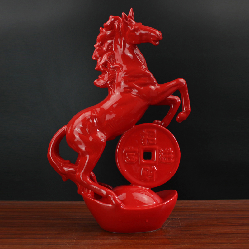马到成功摆件红色陶瓷马办公室家居装饰创意瓷器招财马雕塑工艺品