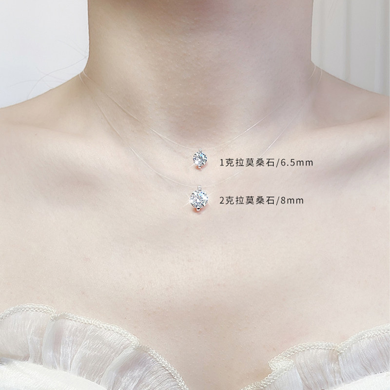莫桑钻项链人鱼之泪项链纯银女款隐形鱼线莫桑石简约超闪送女友