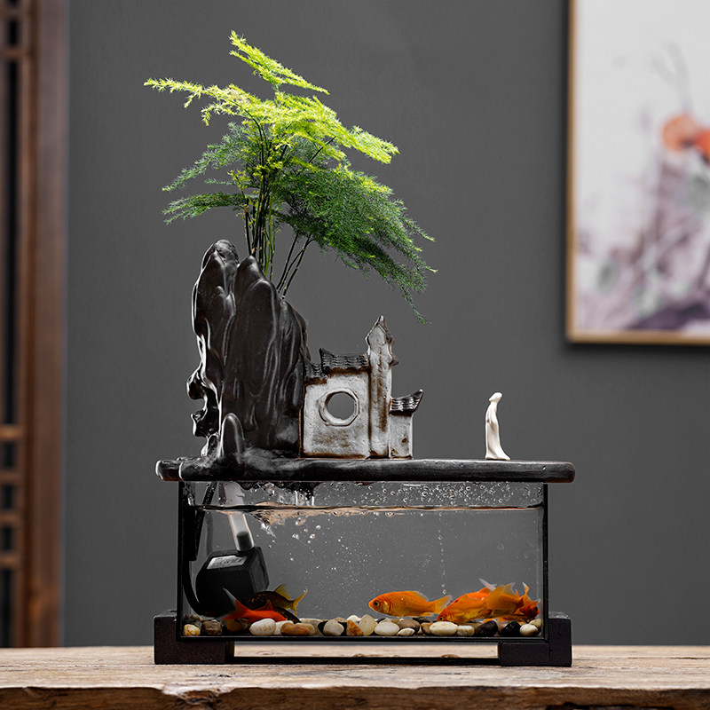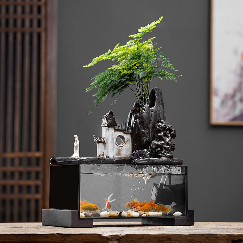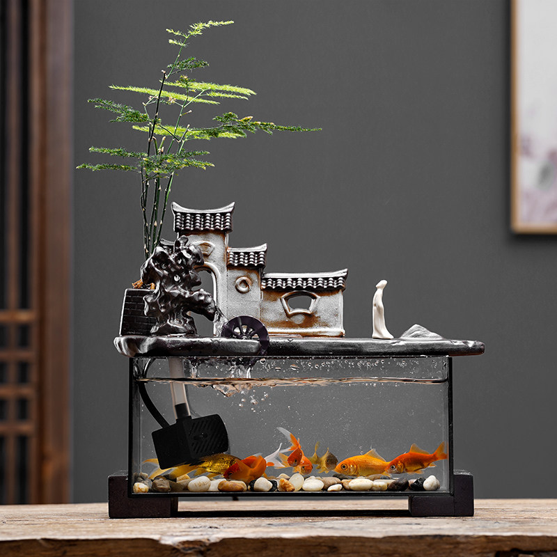 极速鱼缸流水循环招财生财摆件新中式G家居客厅办公室桌面造景开