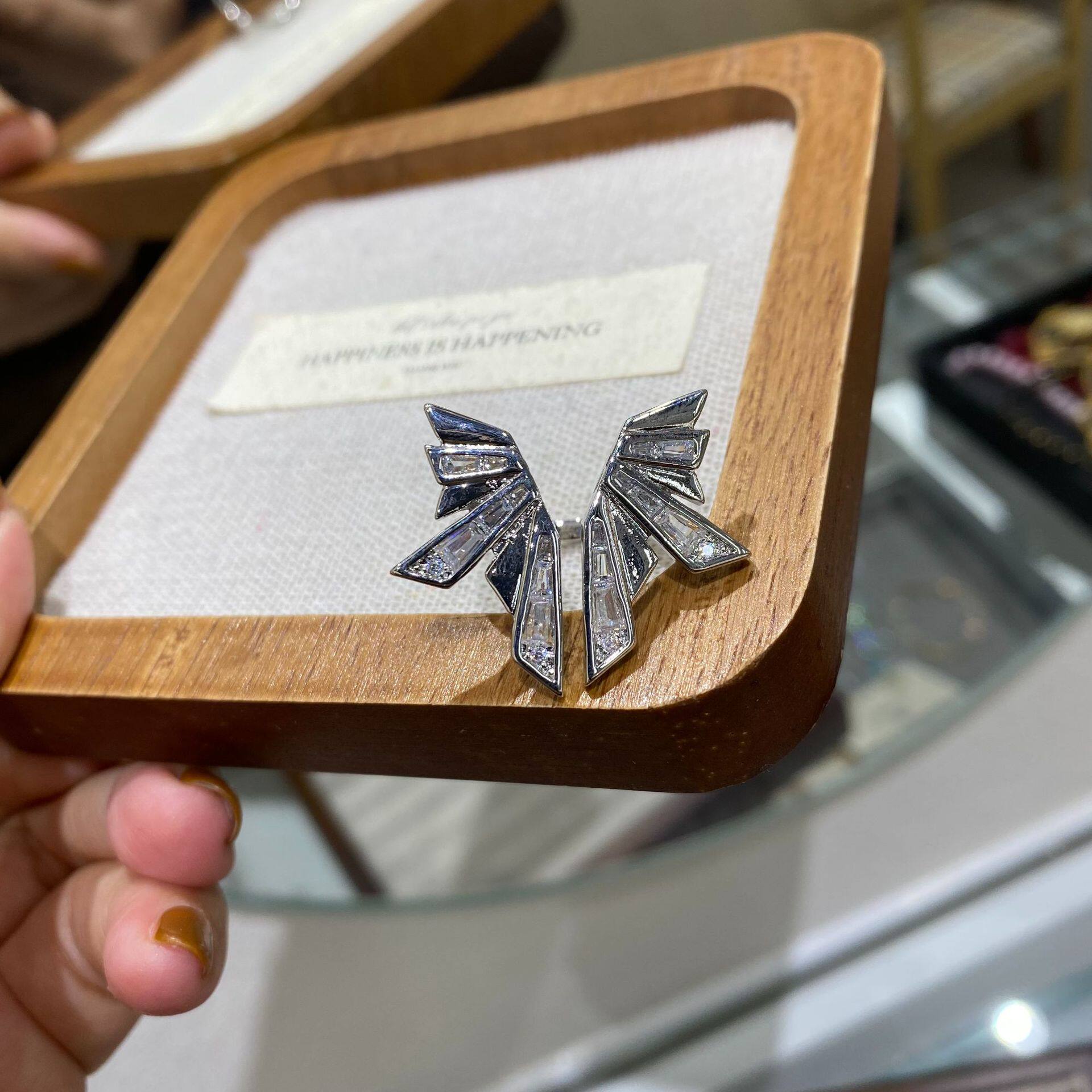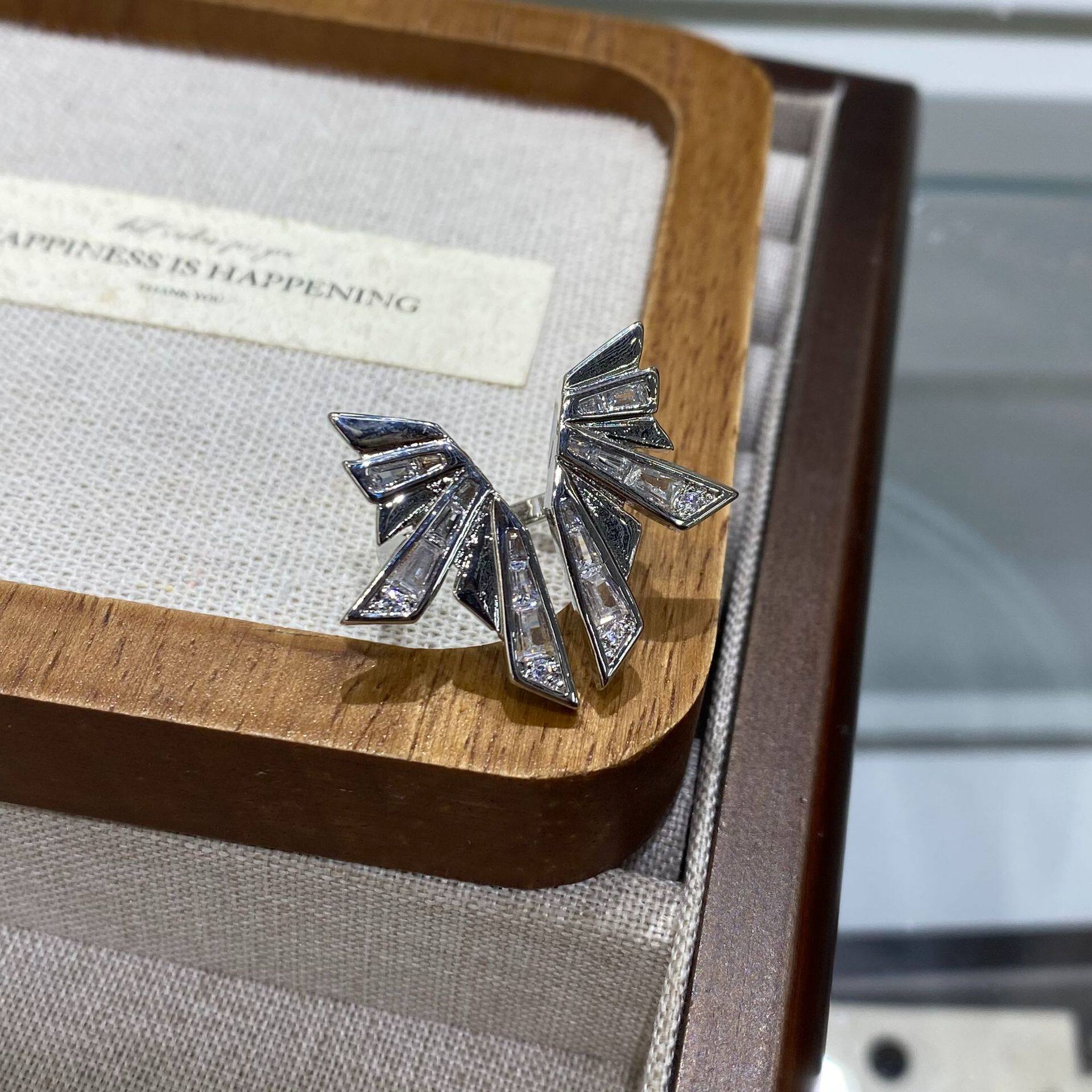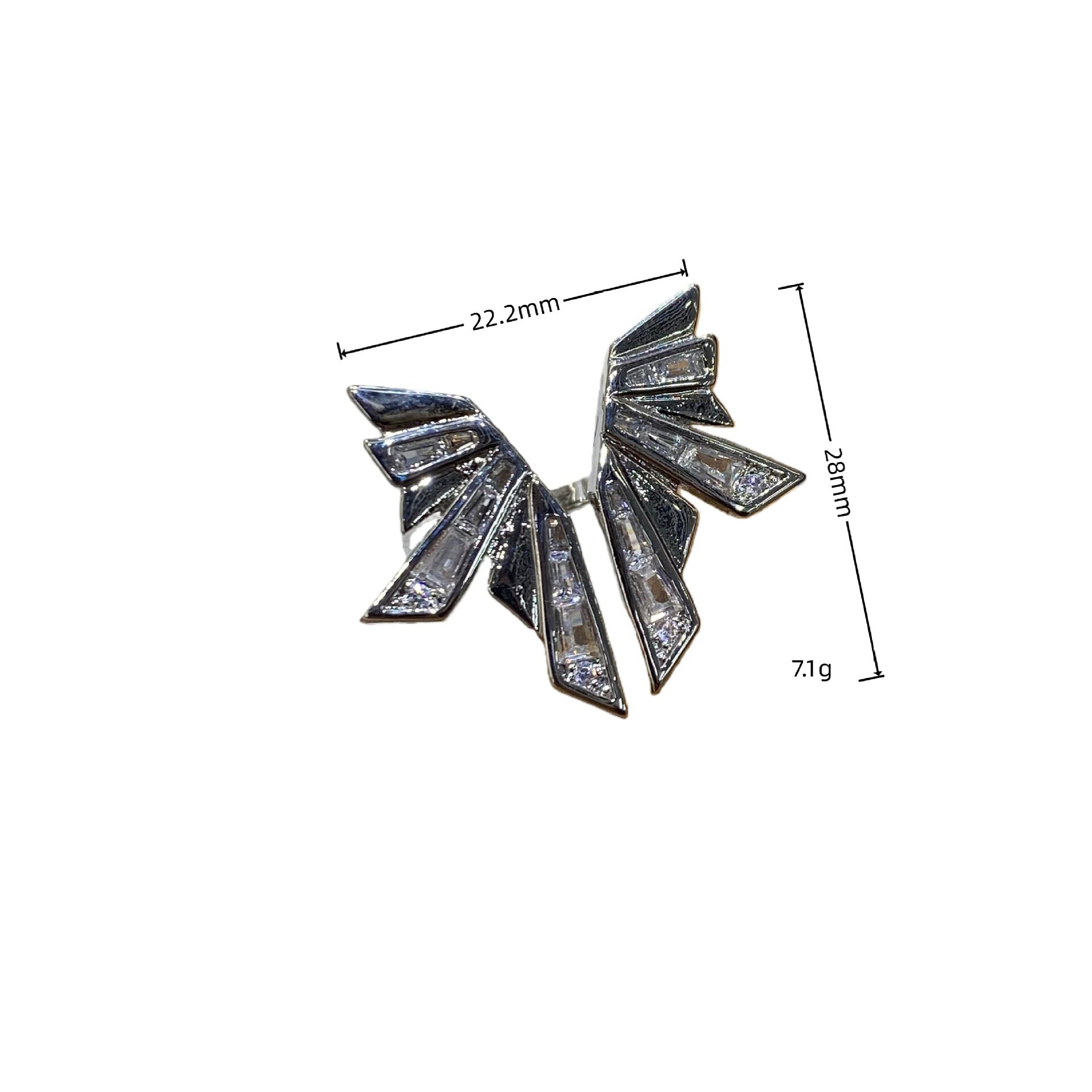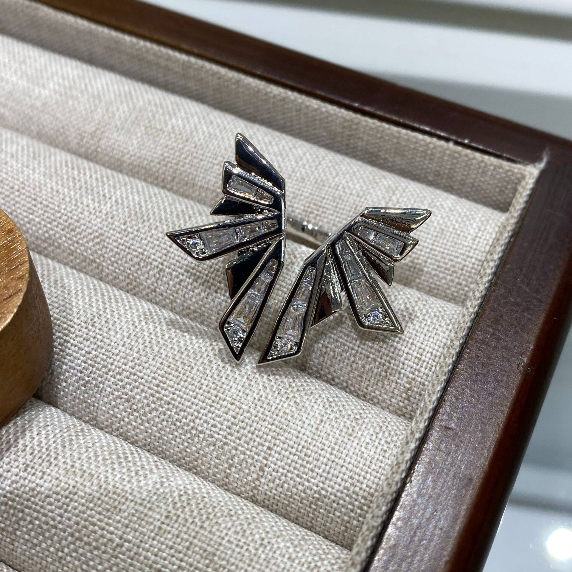 欧美个性轻奢法式高级感白色翅膀戒指时尚百搭通勤小众开口戒指环
