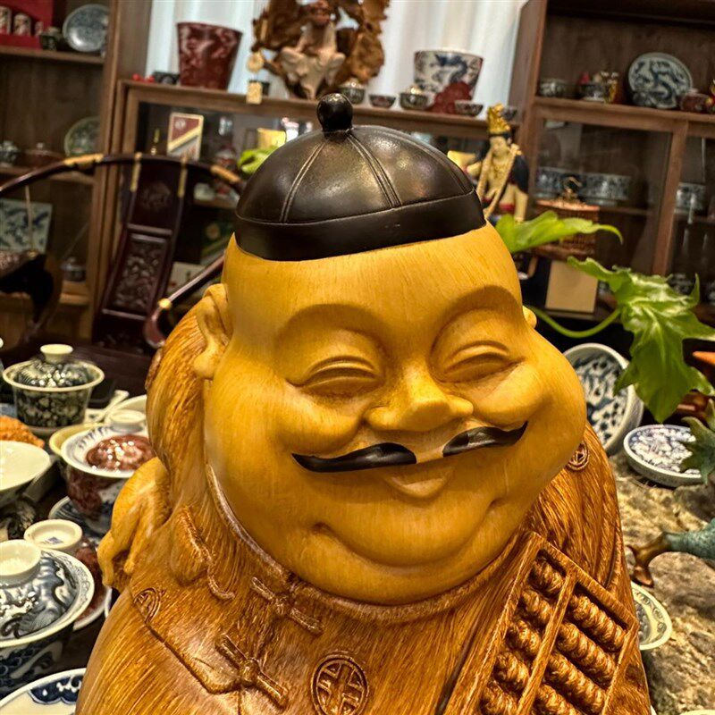 地主算盘仿竹根雕大肚招财地主婆地主笑佛摆件茶空间玄关送礼开业
