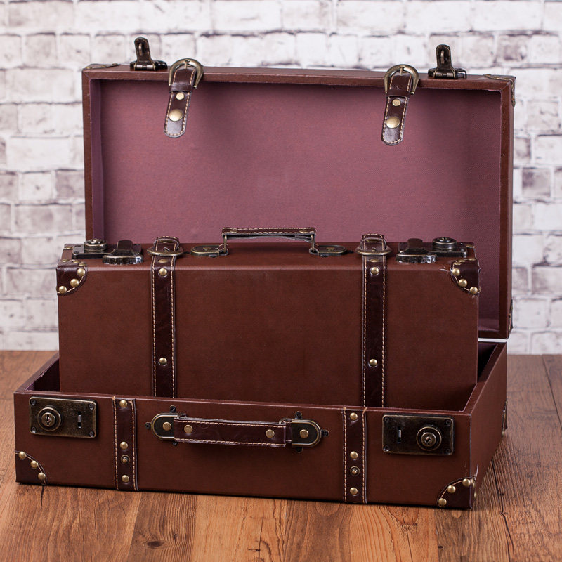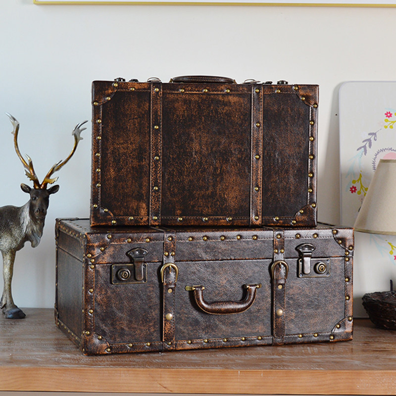 欧式复古手提收纳箱木质仿古木箱子好看皮箱轻奢行李箱展示道具箱
