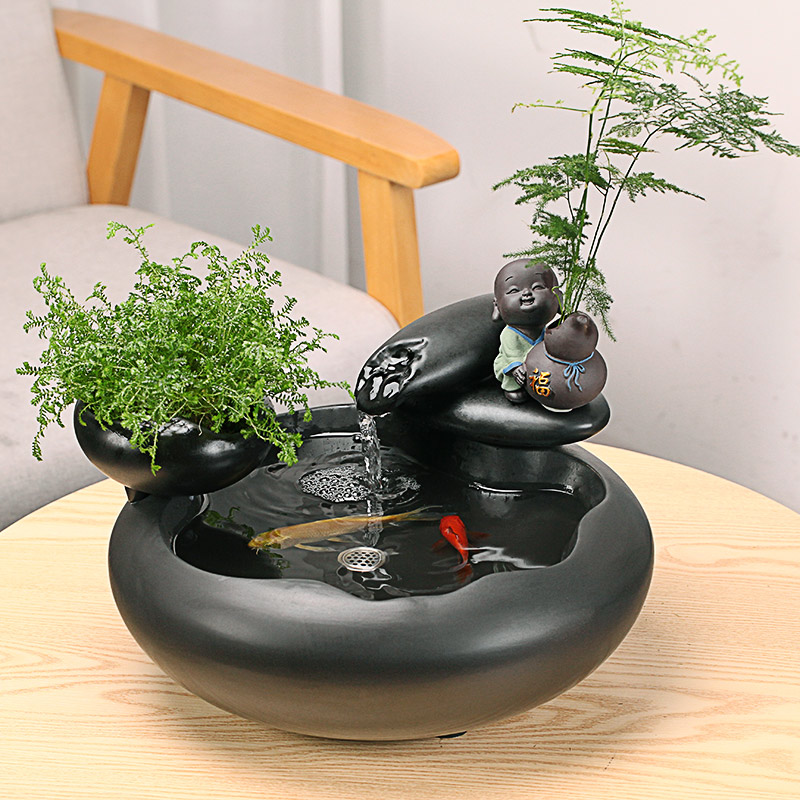 陶瓷流水摆件循环招财鱼缸加湿器客厅家居办公室桌面水景喷泉装饰