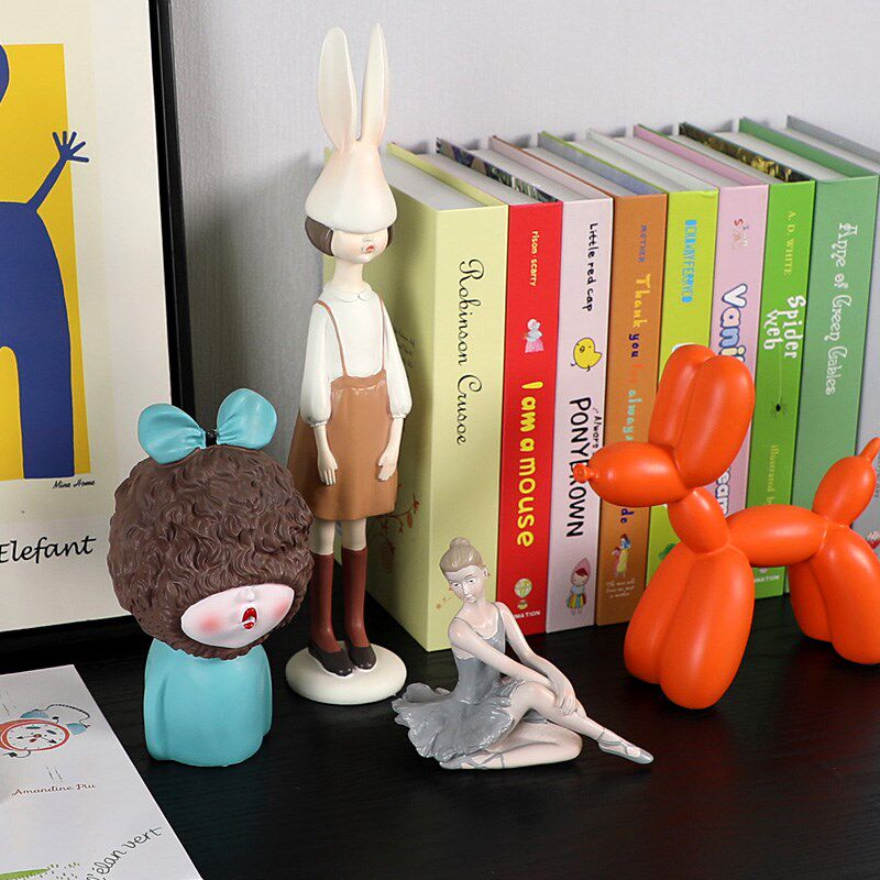 样板房儿童房书房书桌装饰品小摆件卡通芭蕾少女绘本假书挂画现代