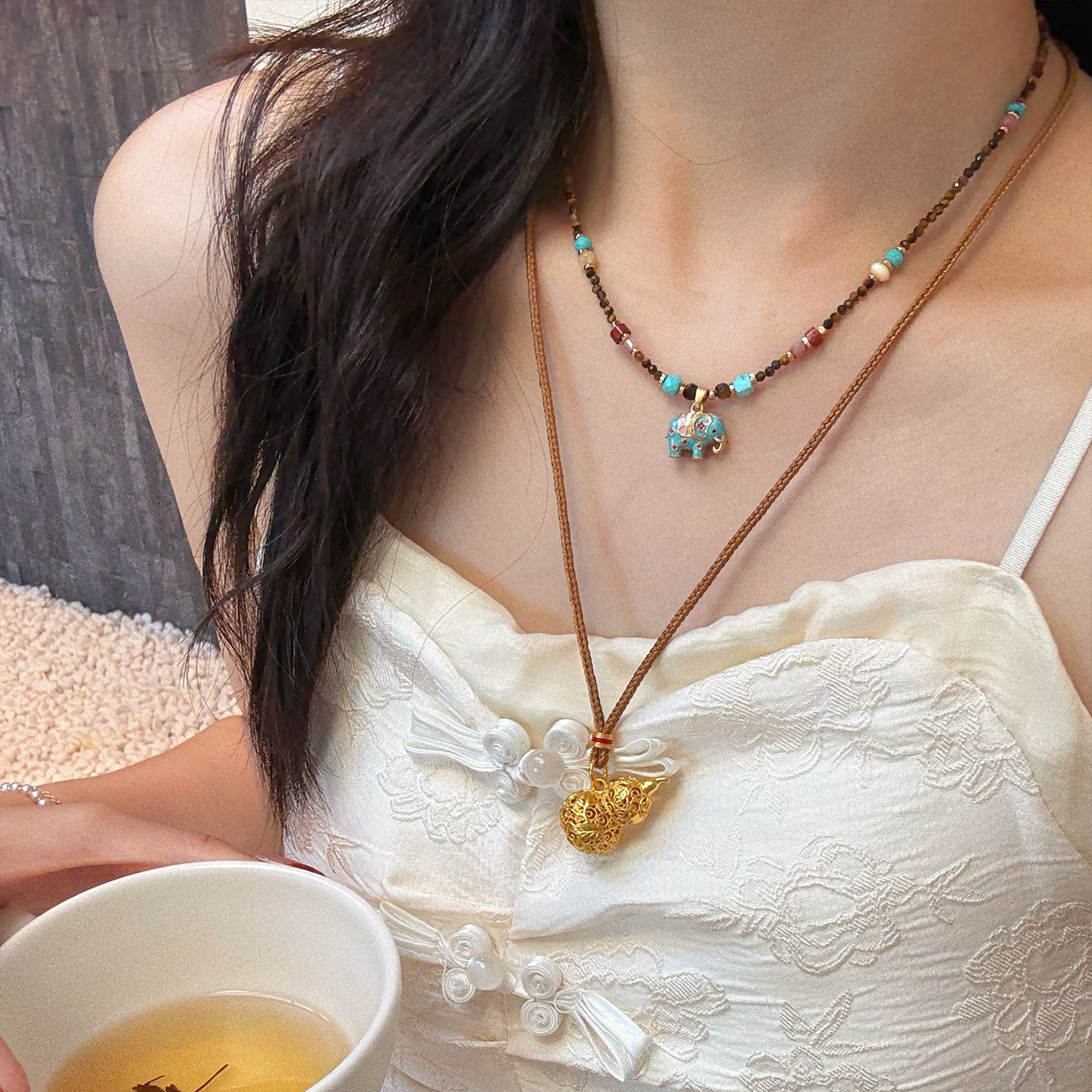 福利款 倪妮金店同款古法镂空花丝葫芦项链新中式长款编绳毛衣链