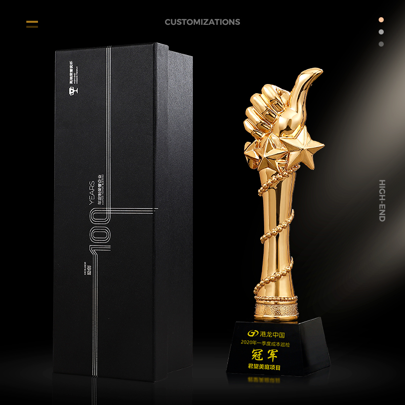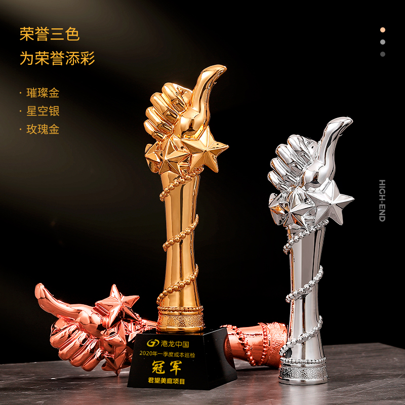 大拇指镀金奖杯定制五角星年会优秀员工奖杯定做季度优秀员工