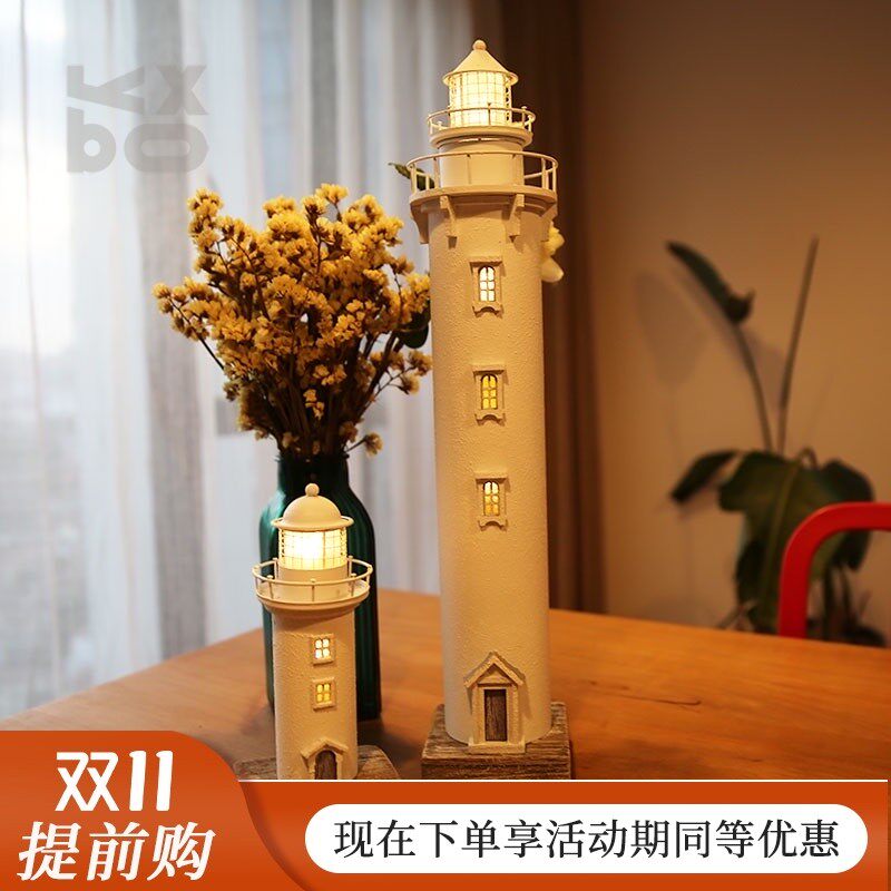 YBOX创意复古美式纯白发光灯塔摆件家居摆件海洋风摆件做旧送礼
