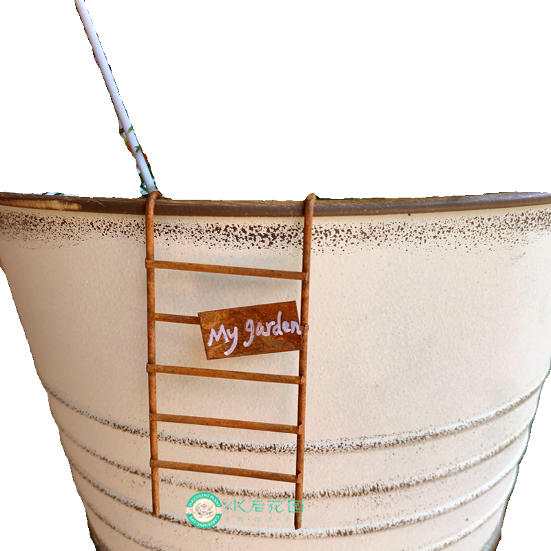 锈色做旧铁艺装饰花盆挂件楼梯造型可写字花插摆件创意独家