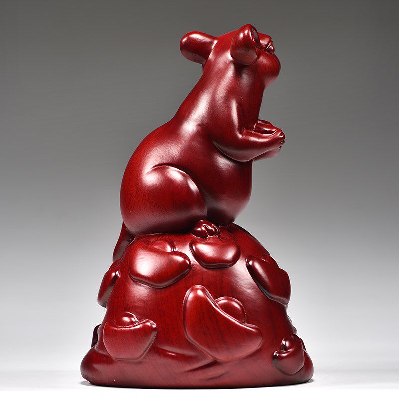 红色木质实木雕刻老鼠摆件生肖鼠家居F客厅酒柜装饰工艺品日常送
