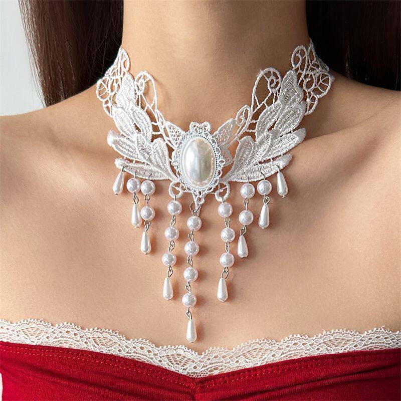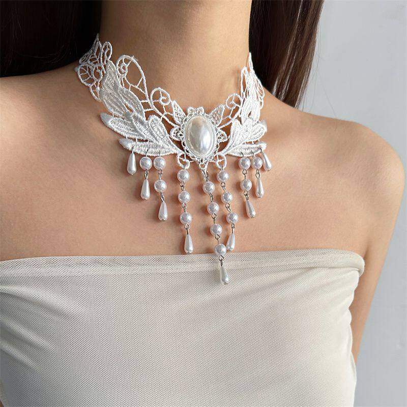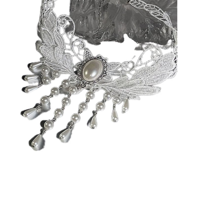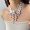 轻奢复古公主蕾丝花边流苏项链白色洛丽塔颈链choke锁骨链女小众