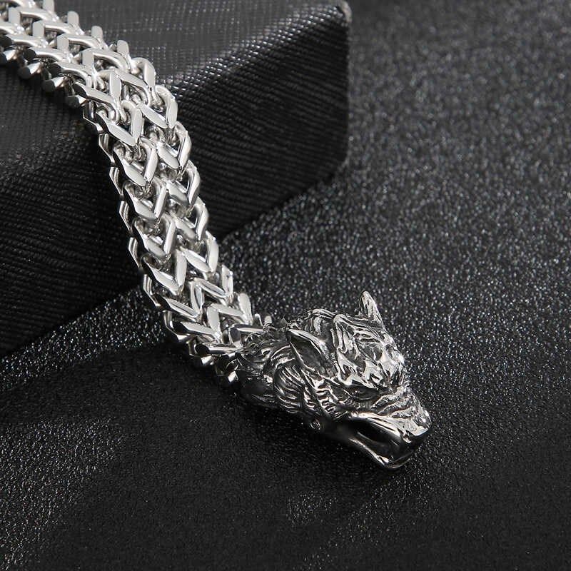 时尚个性a饰品欧美潮人S925银霸气狼头双层铸造男款手链古巴情侣