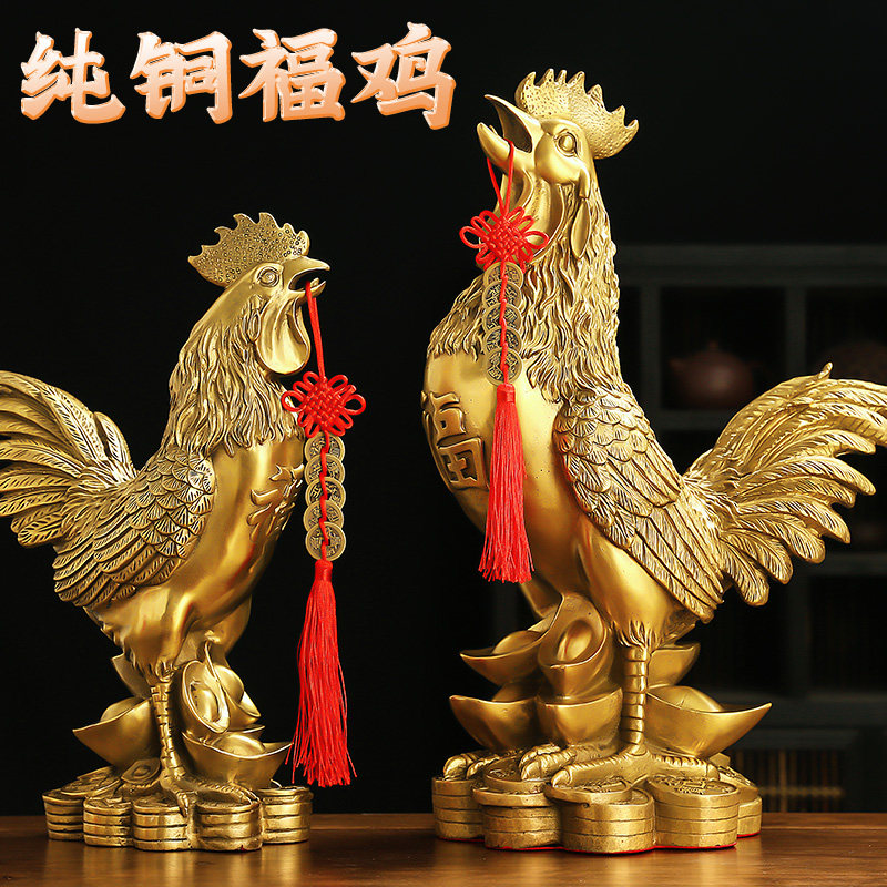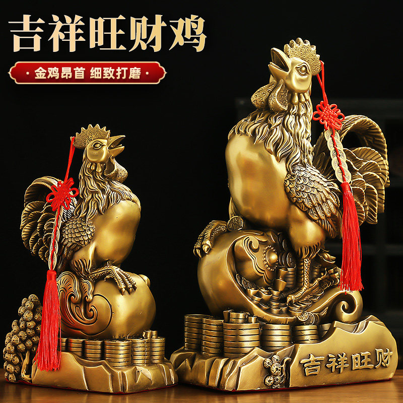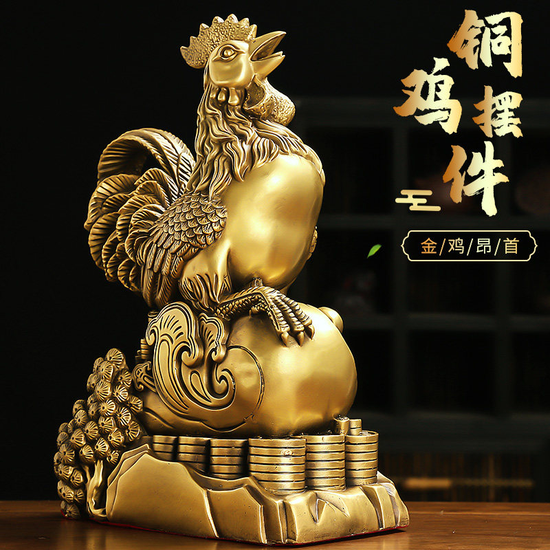 黄铜公鸡摆件金鸡报晓十二生肖鸡客厅卧室酒柜工艺品装饰品元宝鸡