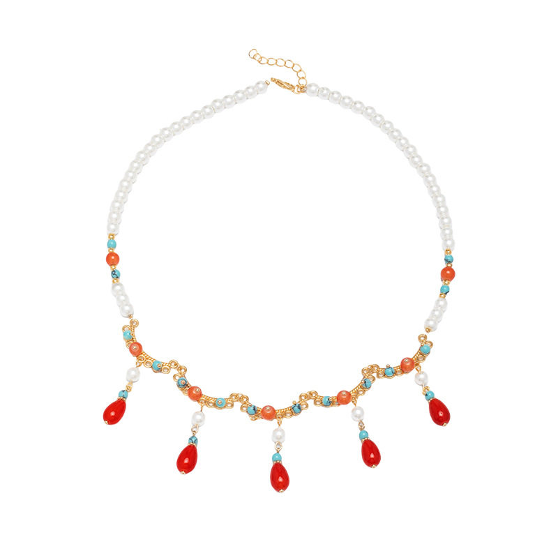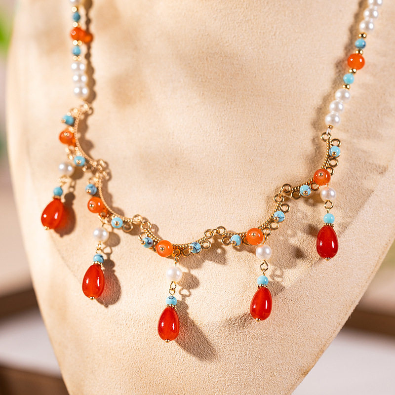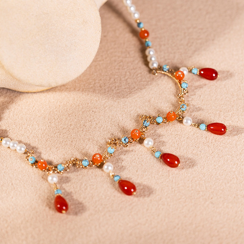原创古风汉服项链新中式旗袍配饰软璎珞中国风红色日常复古锁骨