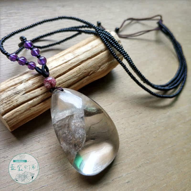 五宝町原创首饰品天然手工异像通透水晶白幽灵双生金字塔水滴型吊