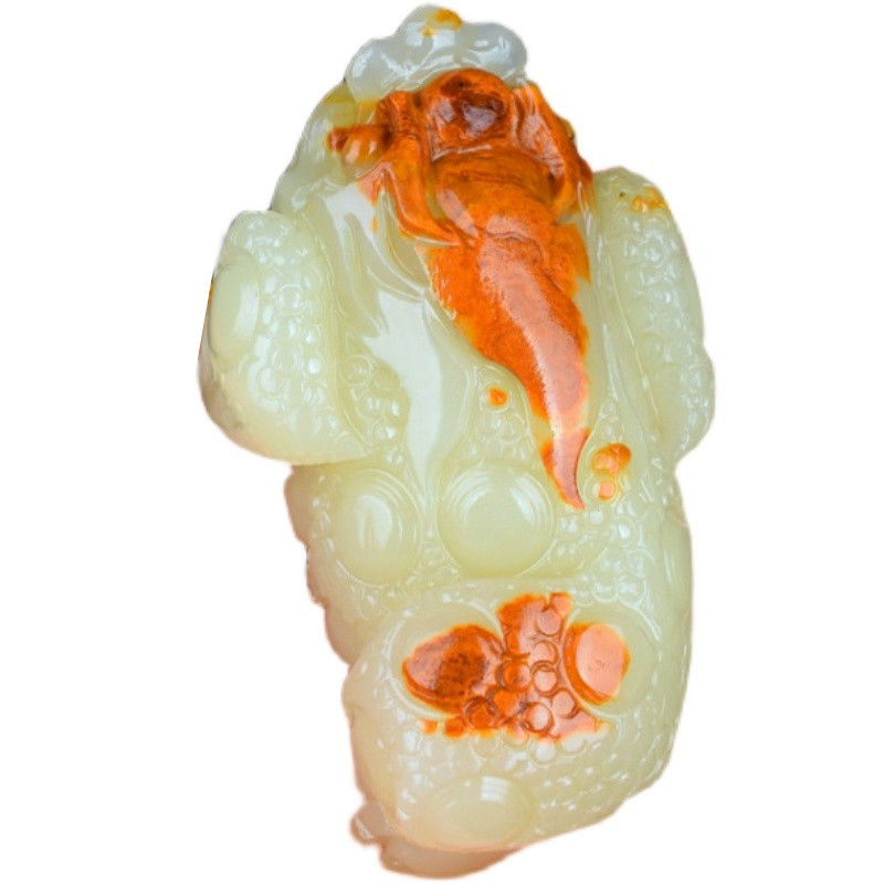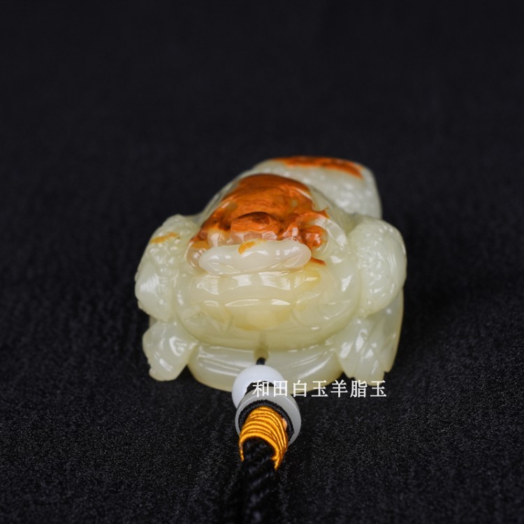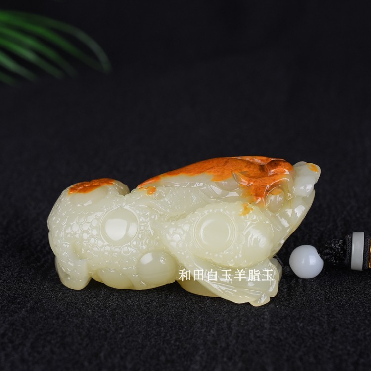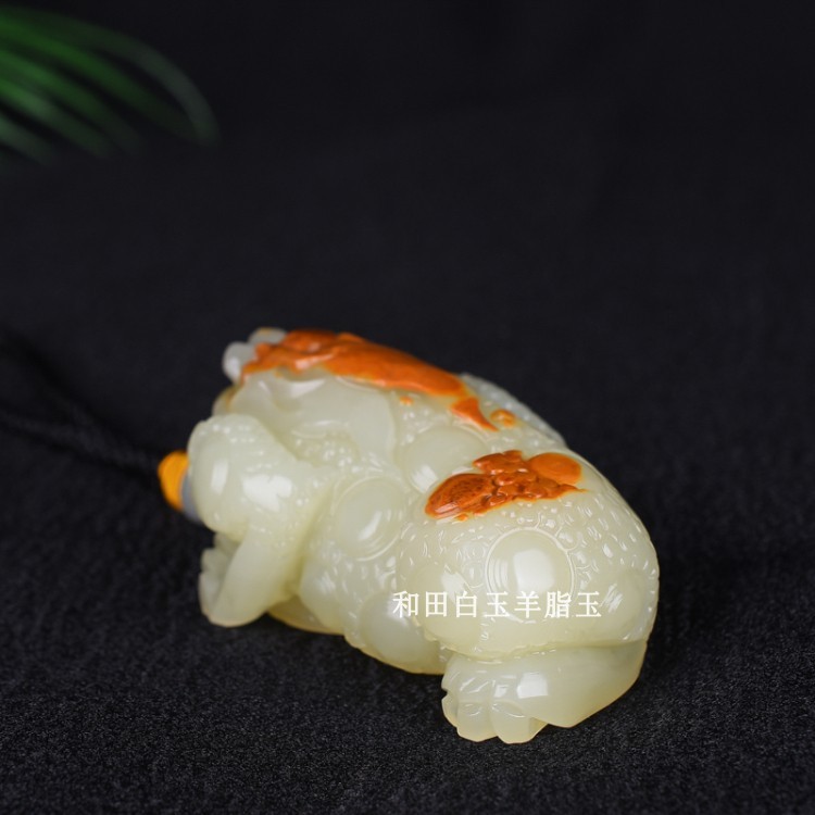 天然新疆和田玉籽料三足金蟾手把件青白玉招财金蟾把玩件小摆件