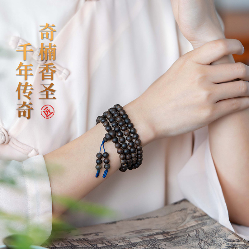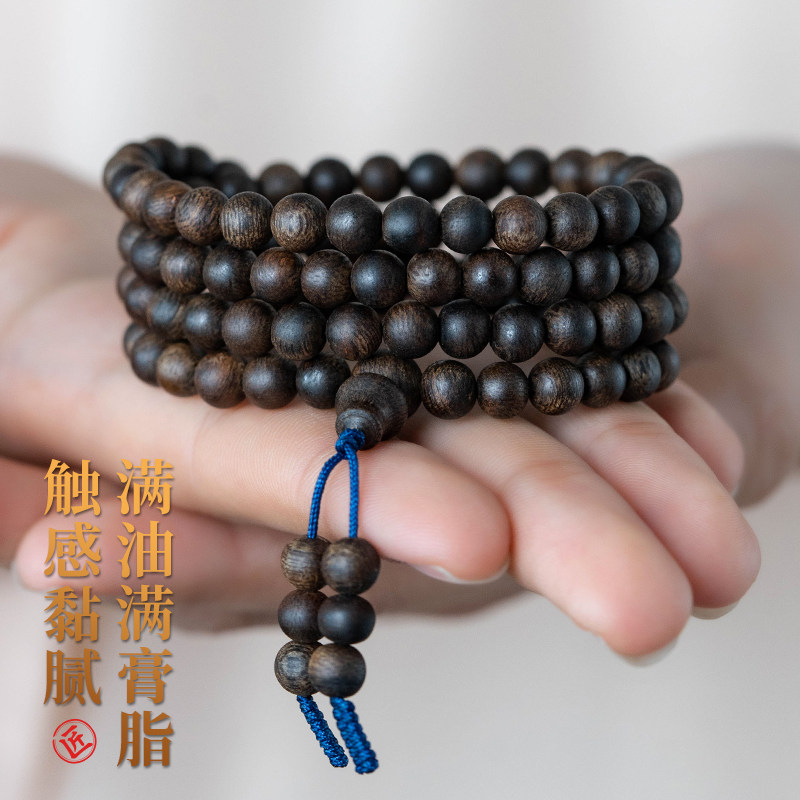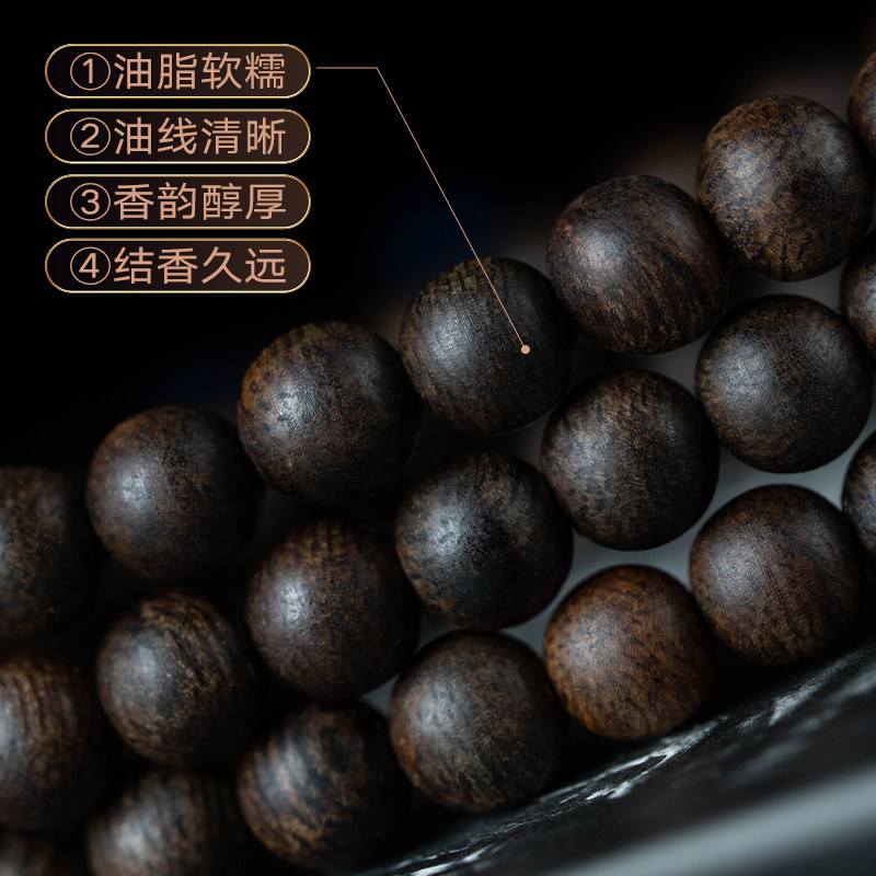 收藏级正宗越南芽庄奇楠沉香手串黑油沉水级0.6棋楠108颗手链佛珠