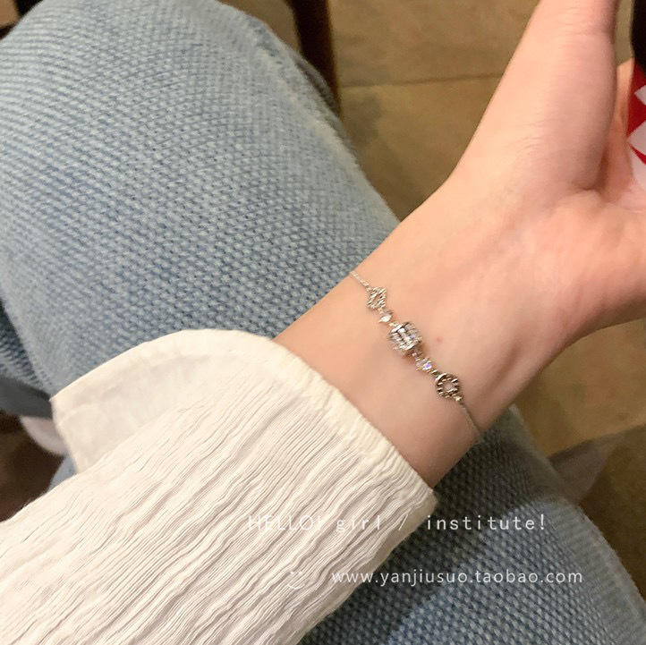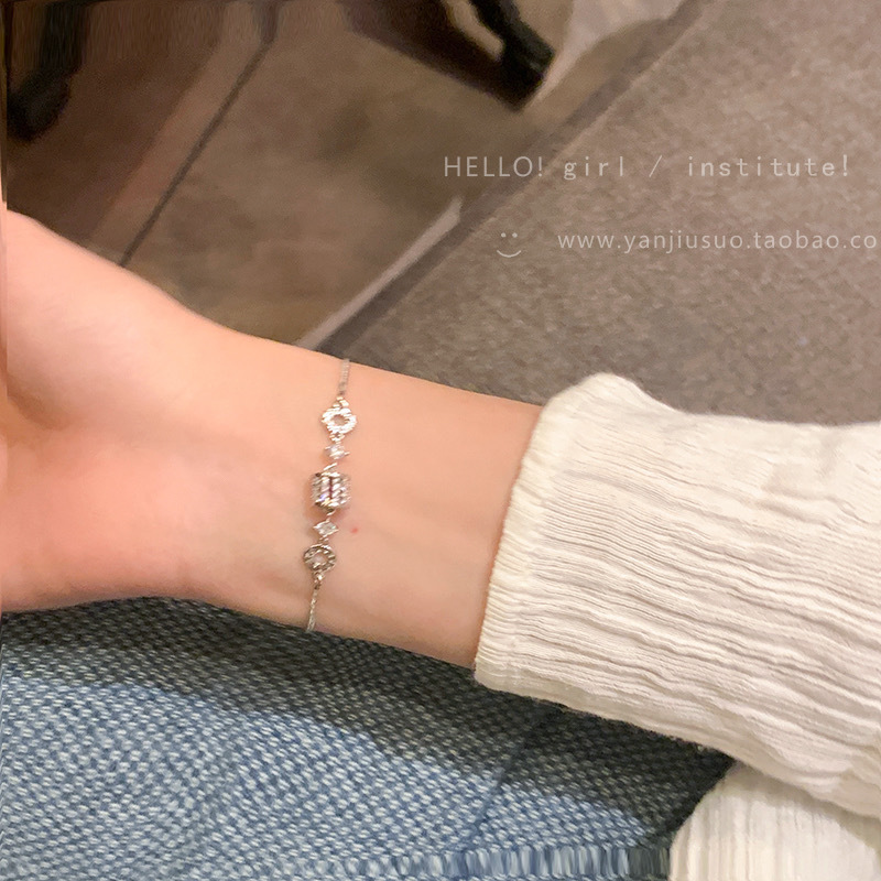 s925纯银小众设计银色圆环手链女可调节简约时尚精致手环饰品