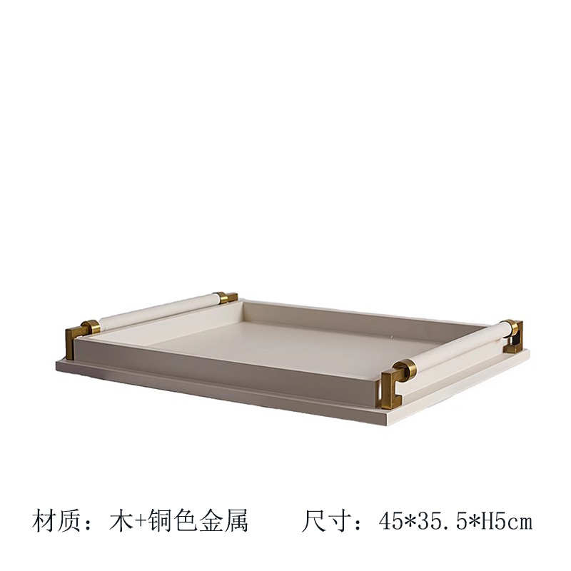 乳白色烤漆木质托盘茶盘简约家居摆设酒店黑色软装饰品样板间摆件