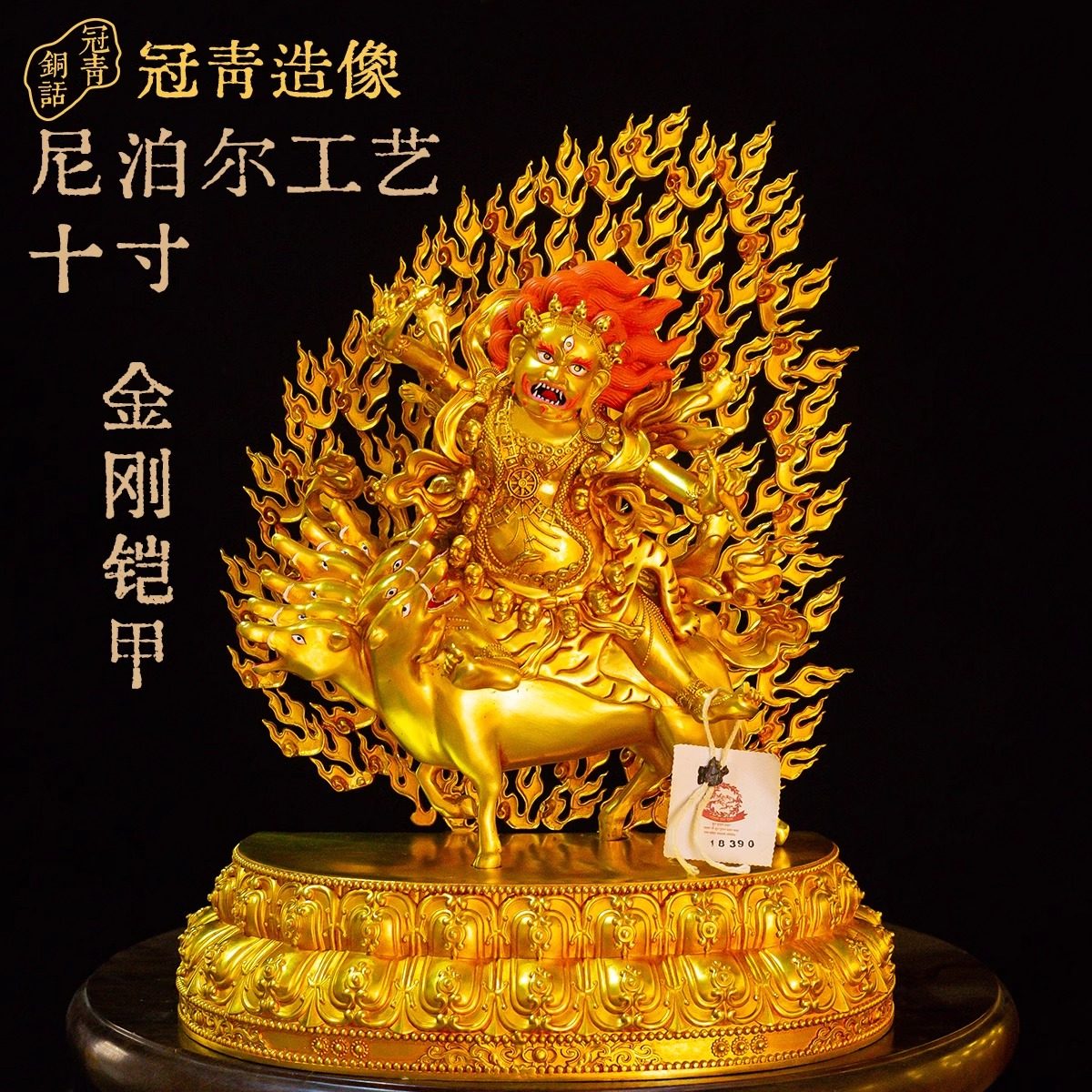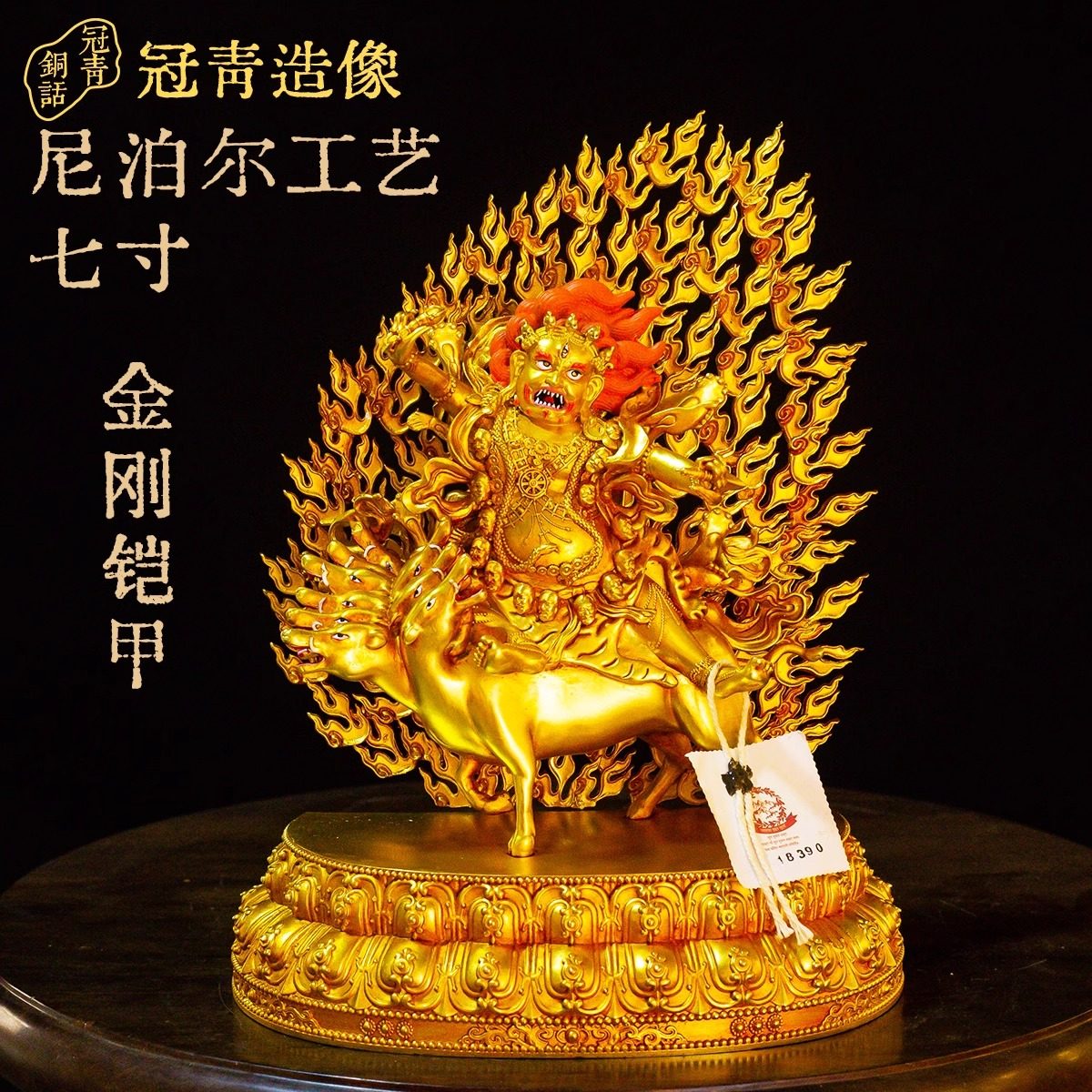 藏式金刚铠甲佛像七寸十寸鎏金彩绘家用供奉摆件精品仿古鎏金铜像