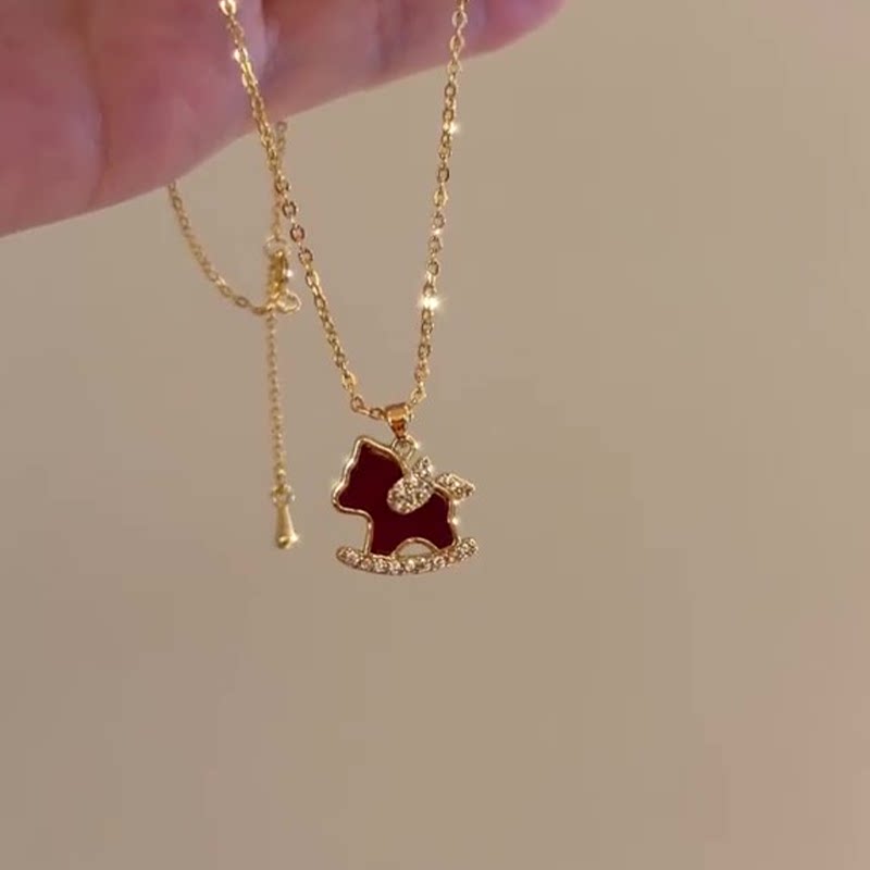 马上有钱红色小马项链女2026新款爆款轻奢高级感新中式气质锁骨链