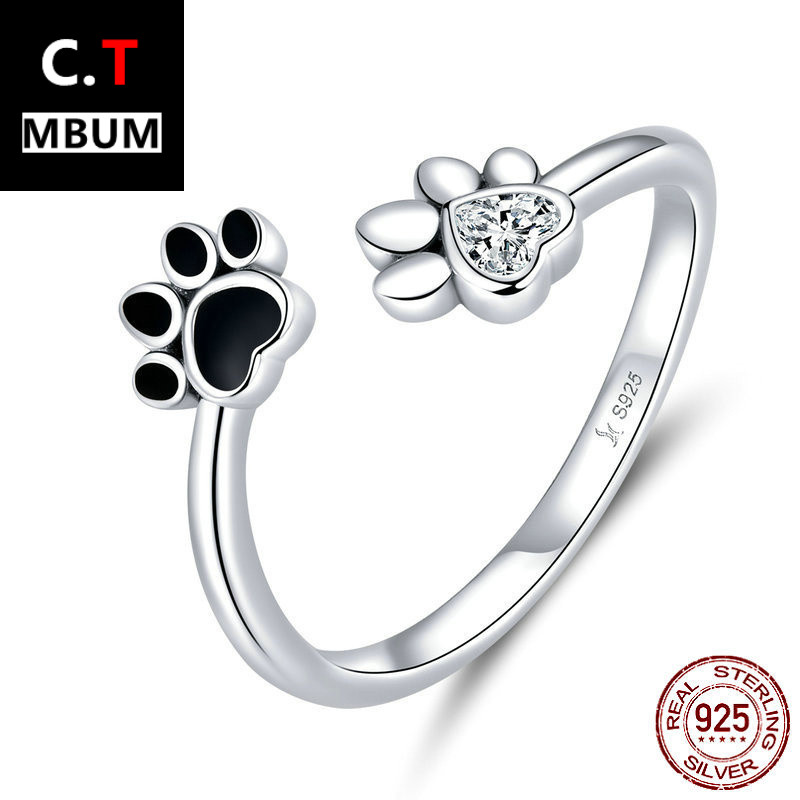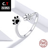 百搭独立站纯银戒指萌宠爪印S925开口戒指时尚黑色滴油指环手饰女