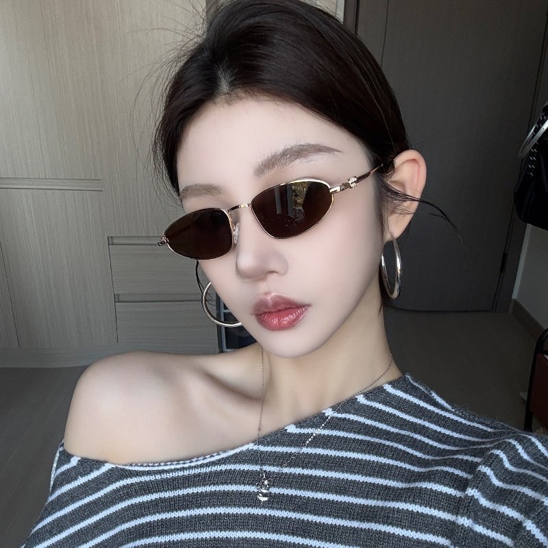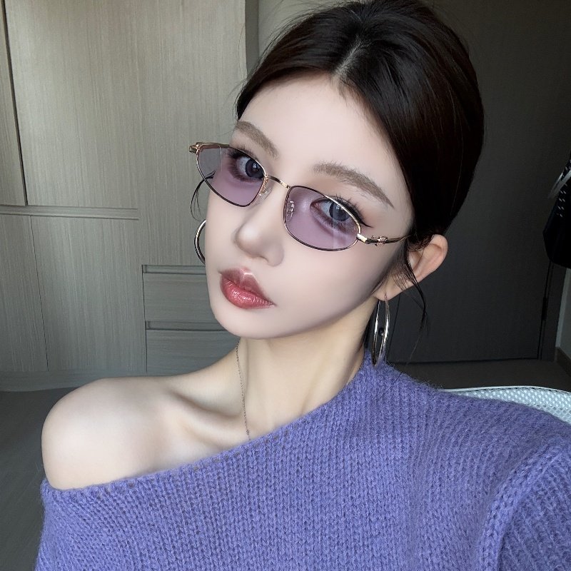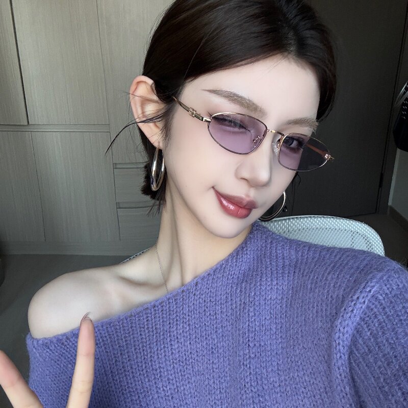 复古金属小框猫眼透明紫色墨镜女欧美风街拍高级网感小脸太阳眼镜