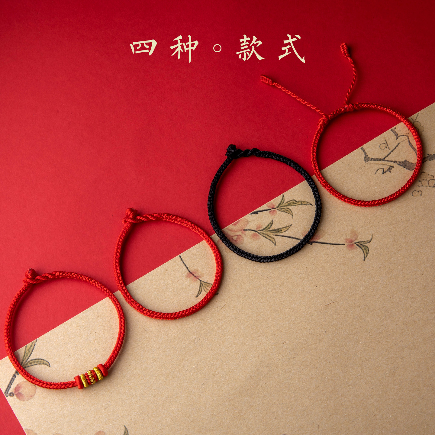 本命年红绳手链红色手绳半成品编绳好运女款编织绳红手绳DIY黄金