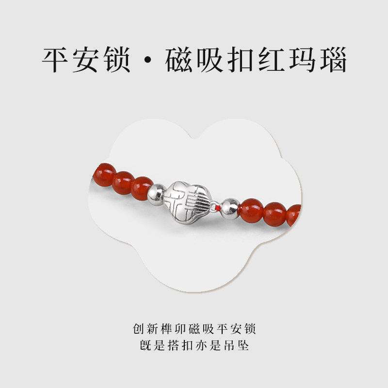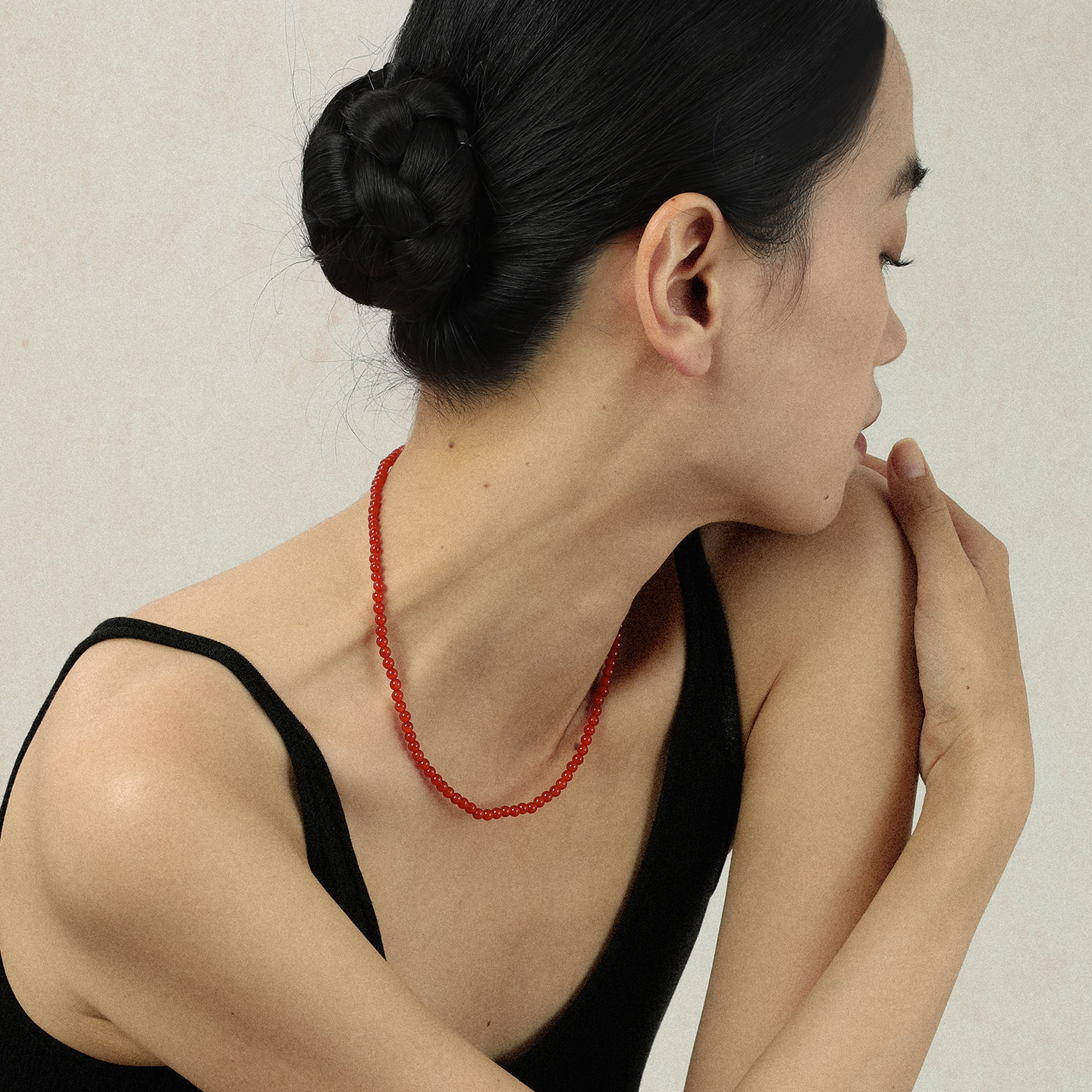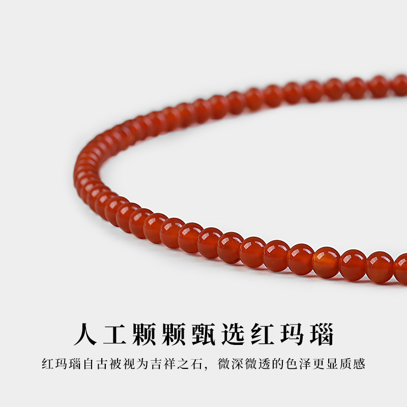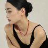 925纯银天然红色玛瑙项链女款新中式锁骨链本命年小米珠毛衣吊坠