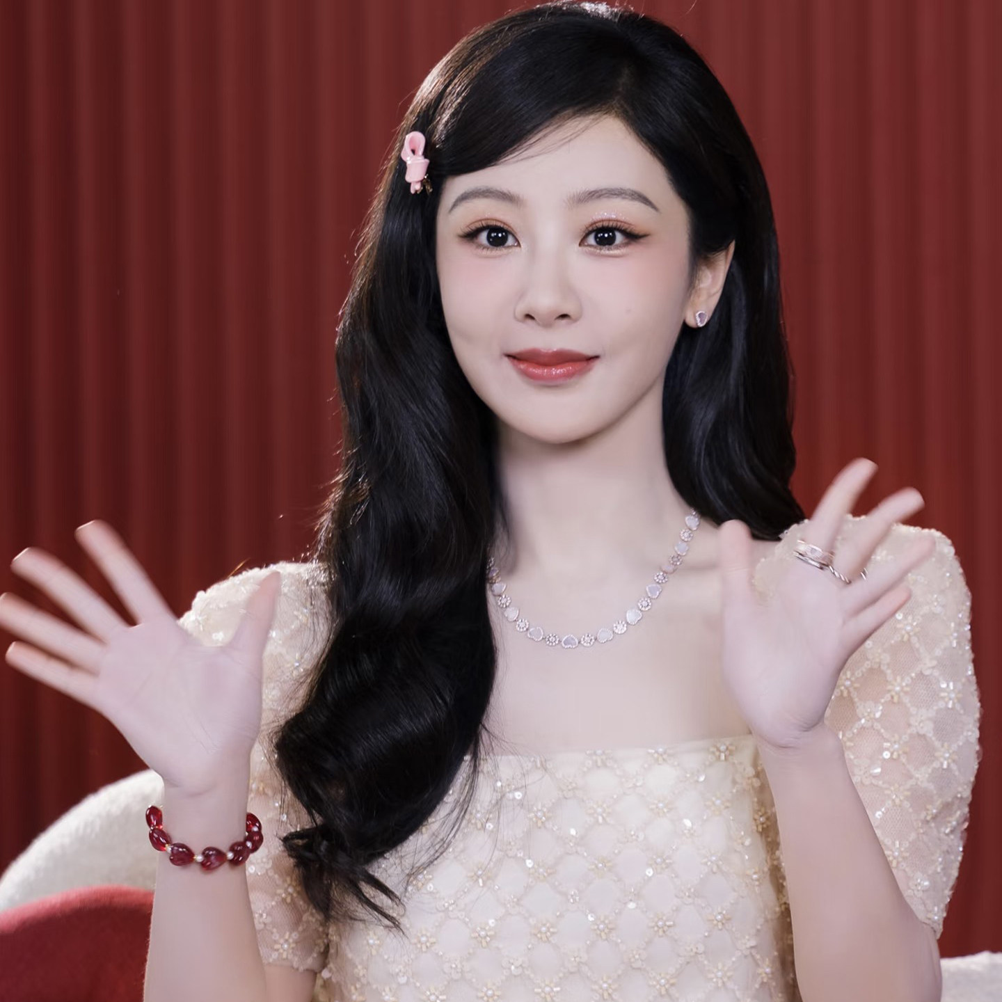杨紫同款手链复古桃心串珠设计感手饰高级感红色爱心琉璃珍珠手串