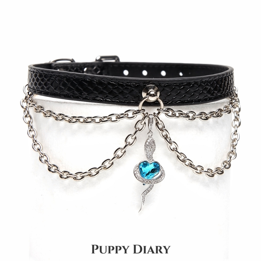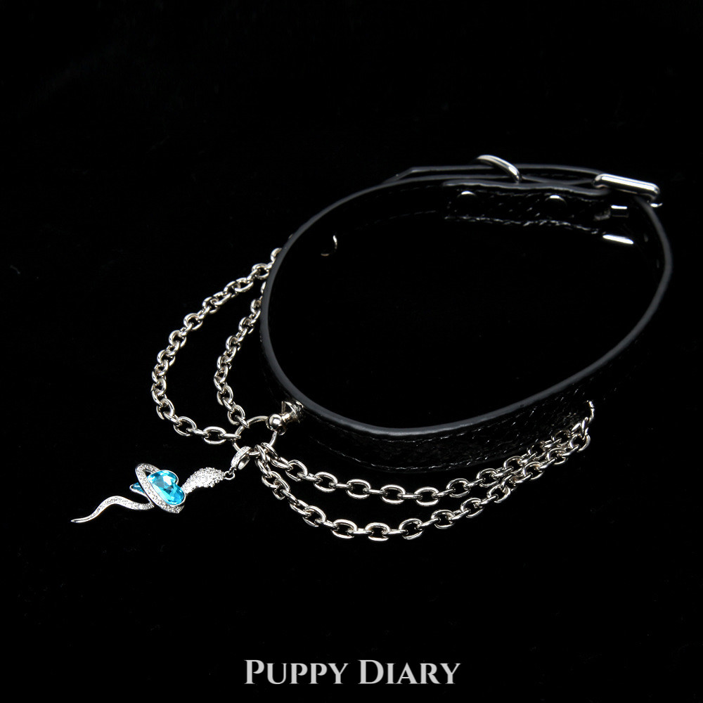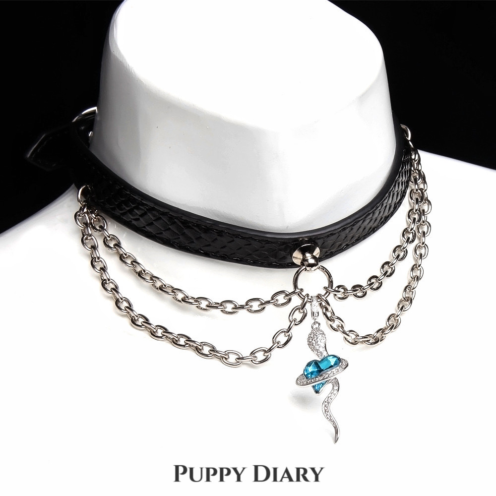 Puppy*黑色蛇皮纹项圈choker女m项链可刻字蛇吊坠男情侣脖圈