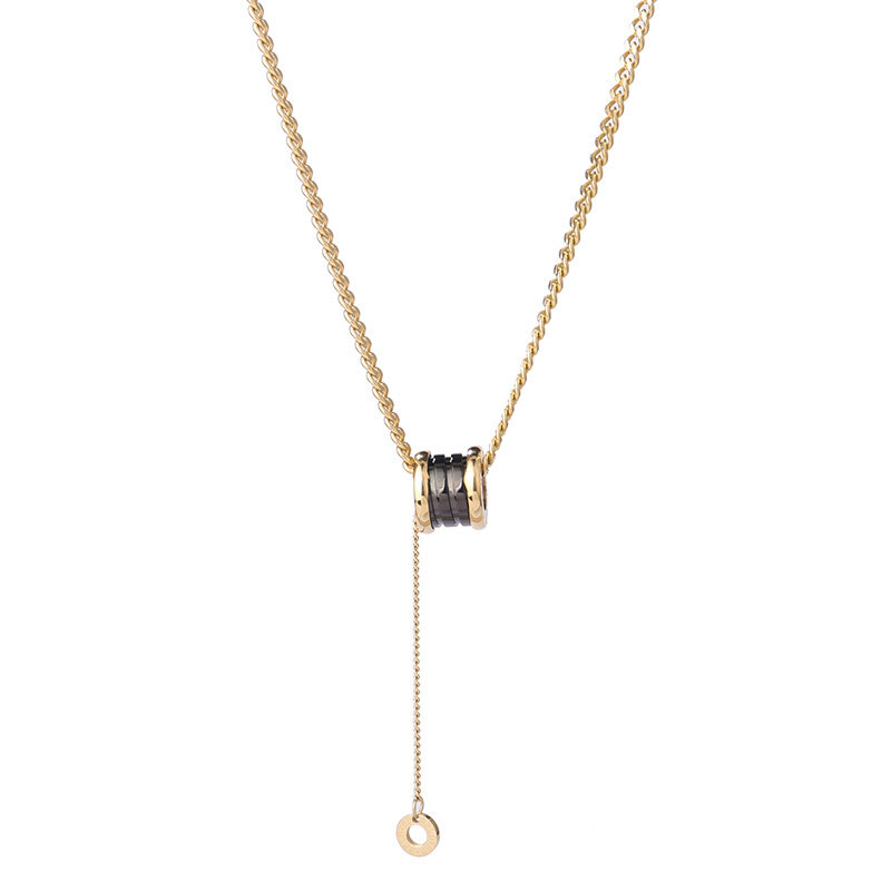 黑色陶瓷小蛮腰钛钢毛衣链秋项链女不掉色锁骨链高级感2025年新款