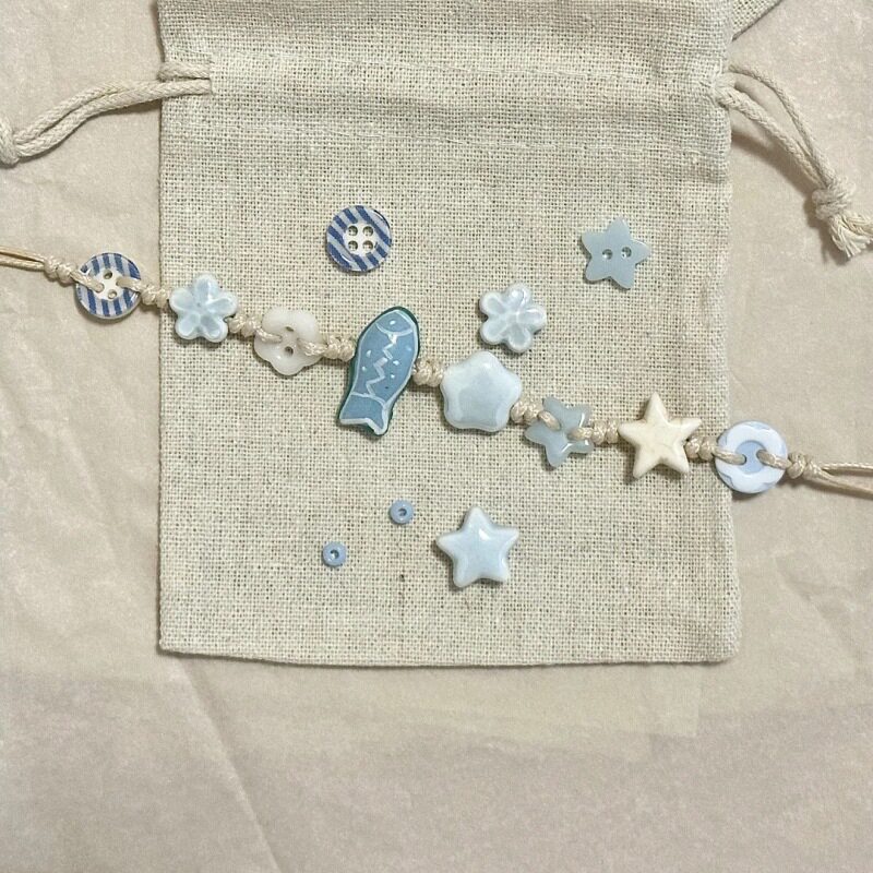 蓝色小鱼星星手链2024新款海洋生物设计感可爱高颜值纽扣手链
