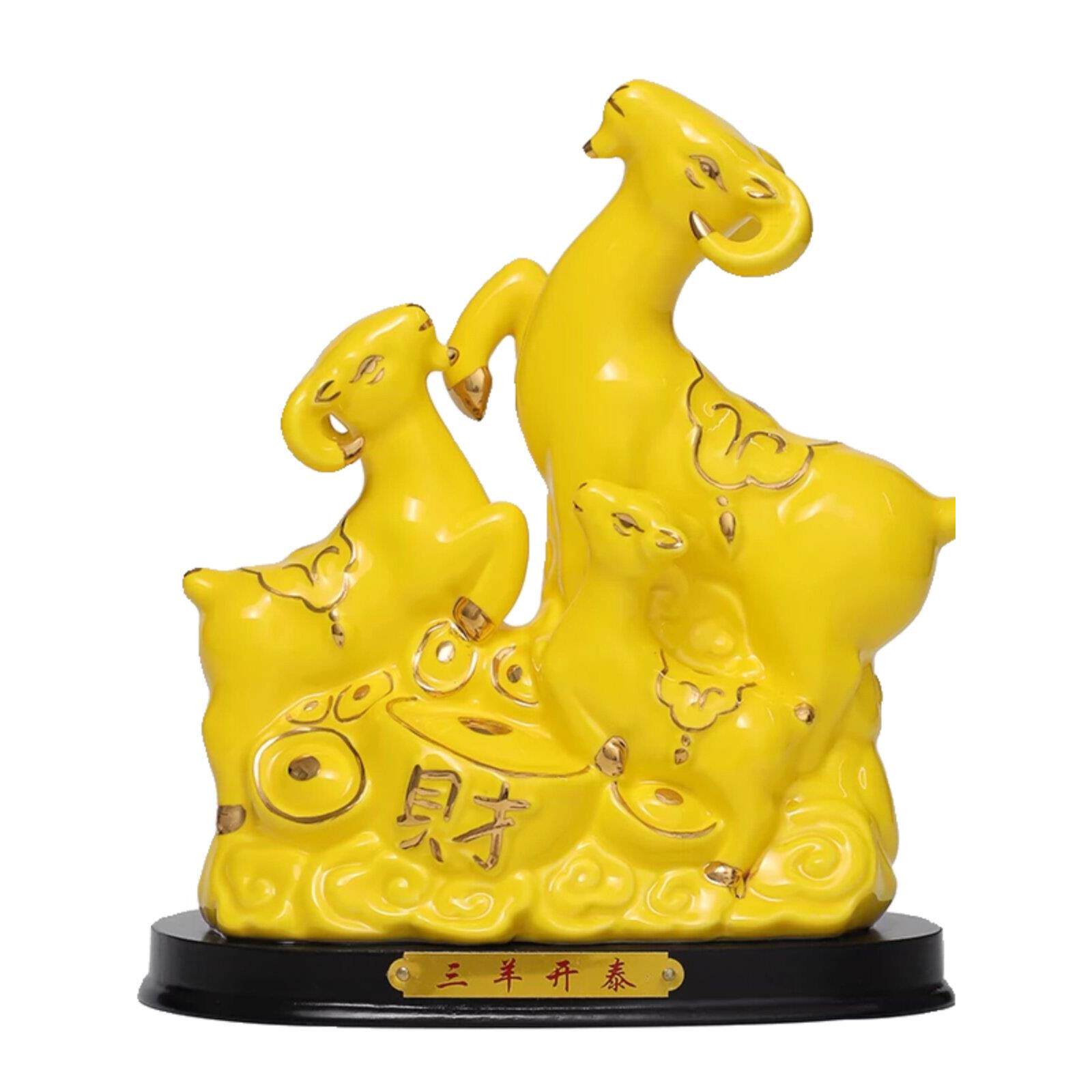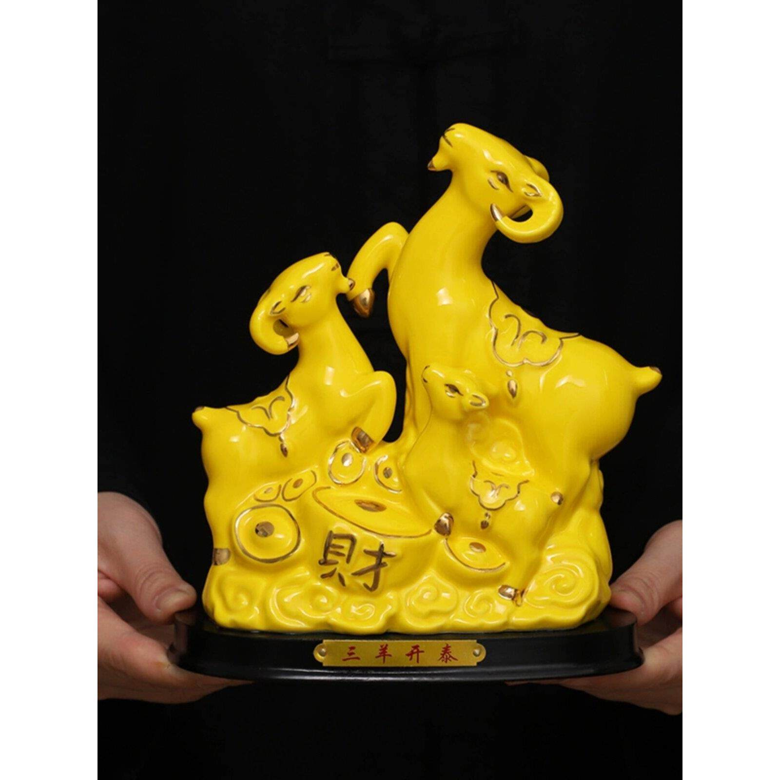 陶瓷三阳开泰羊饰品黄色招财进宝角家风水客厅三阳开泰陶瓷工艺品